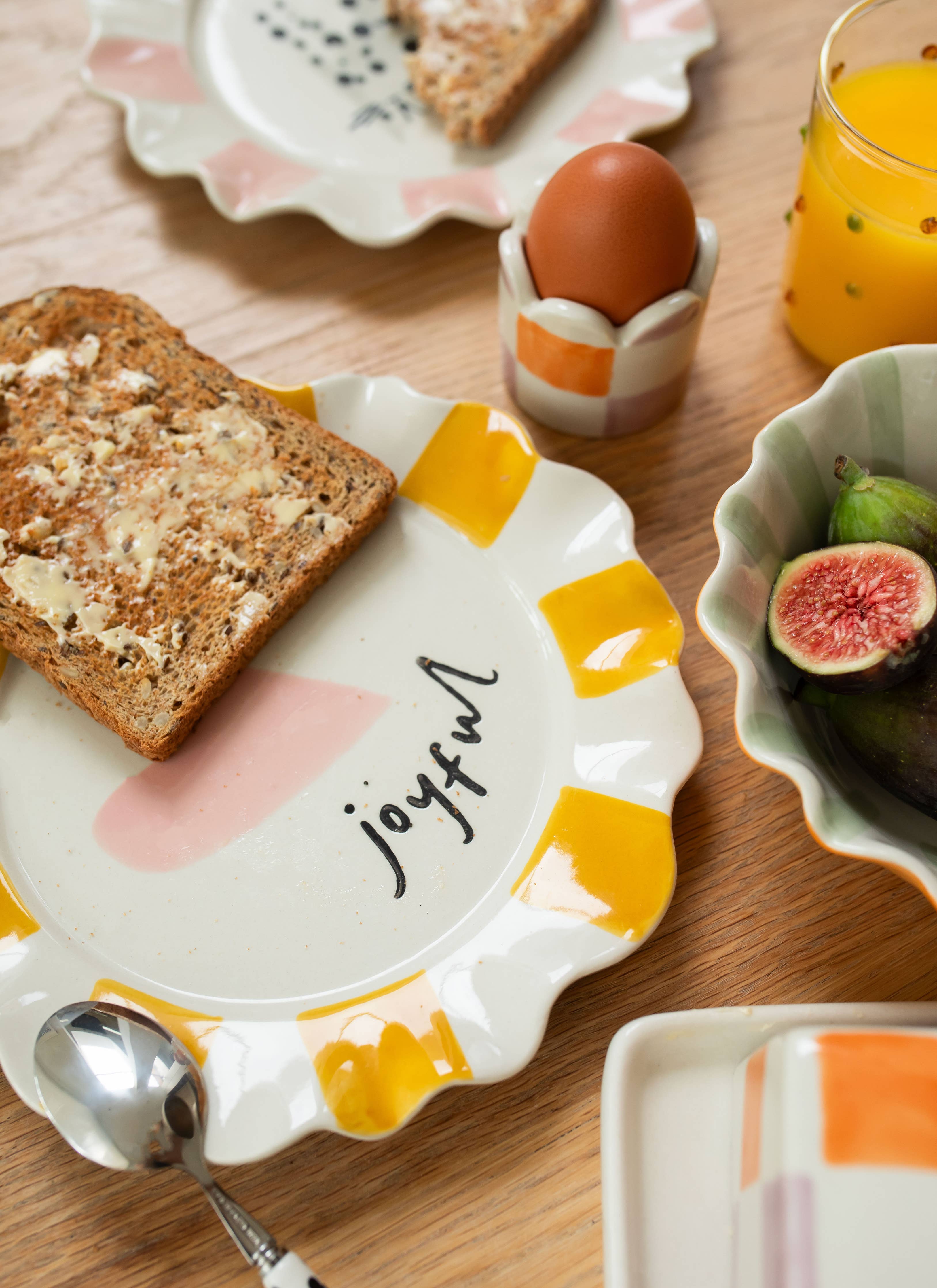 Bright, hand-glazed, and finished with a scalloped rim, this stoneware plate brings a little fun to the table. Heat-resistant and safe for dishwasher and microwave use. Hand-finished details mean no two plates are the same.