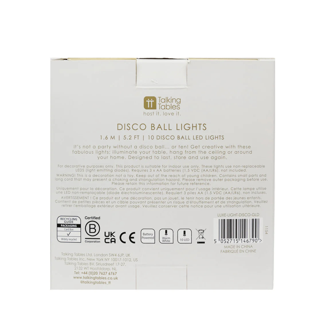 Add instant sparkle with the Gold Disco Ball String Lights. At 1.6m long with 10 shimmering LEDs, they’re perfect for dressing up tables, mantles or shelves — and battery powered so you can place them anywhere. A fun, glittery touch for parties or cosy evenings at home.