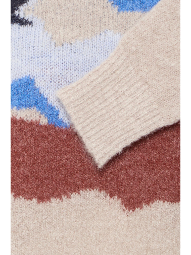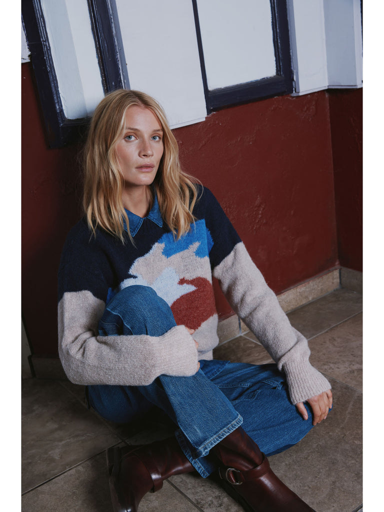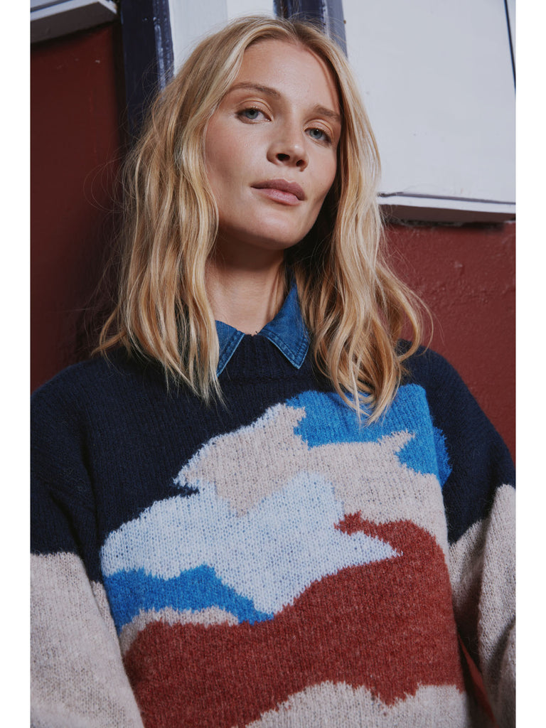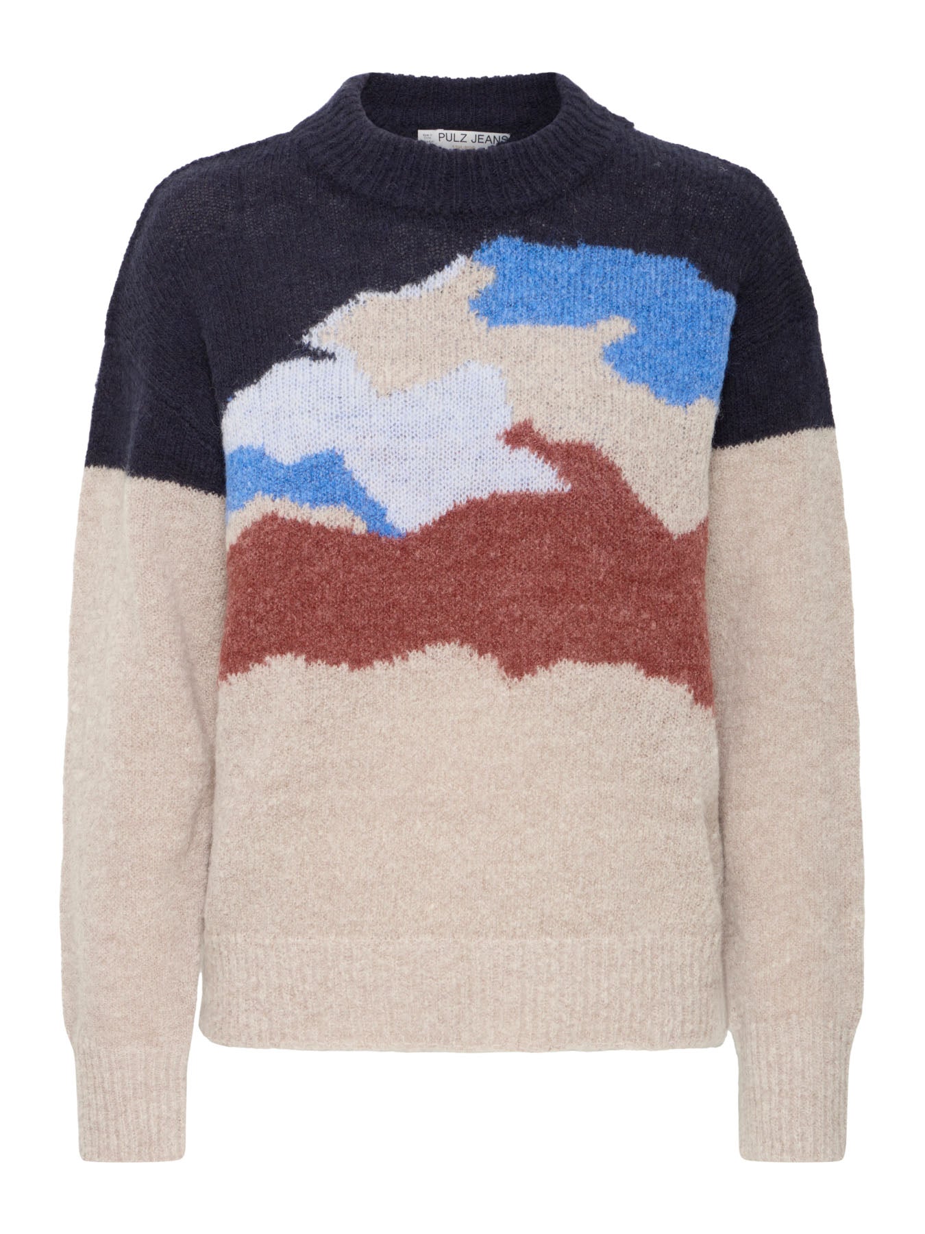 The Mimi Pullover in Dark Sapphire Melange by Pulz is crafted from a fine-knit mohair blend. Perfect for layering or wearing on its own, this elegant jumper will quickly become a key piece in your autumn wardrobe.