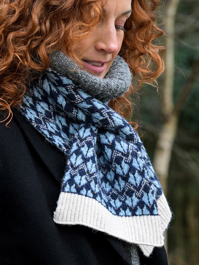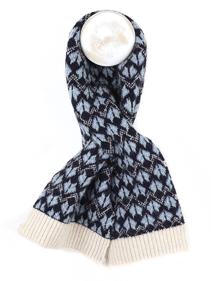 • Navy/Cream Mix Flower Pull Thru Scarf
