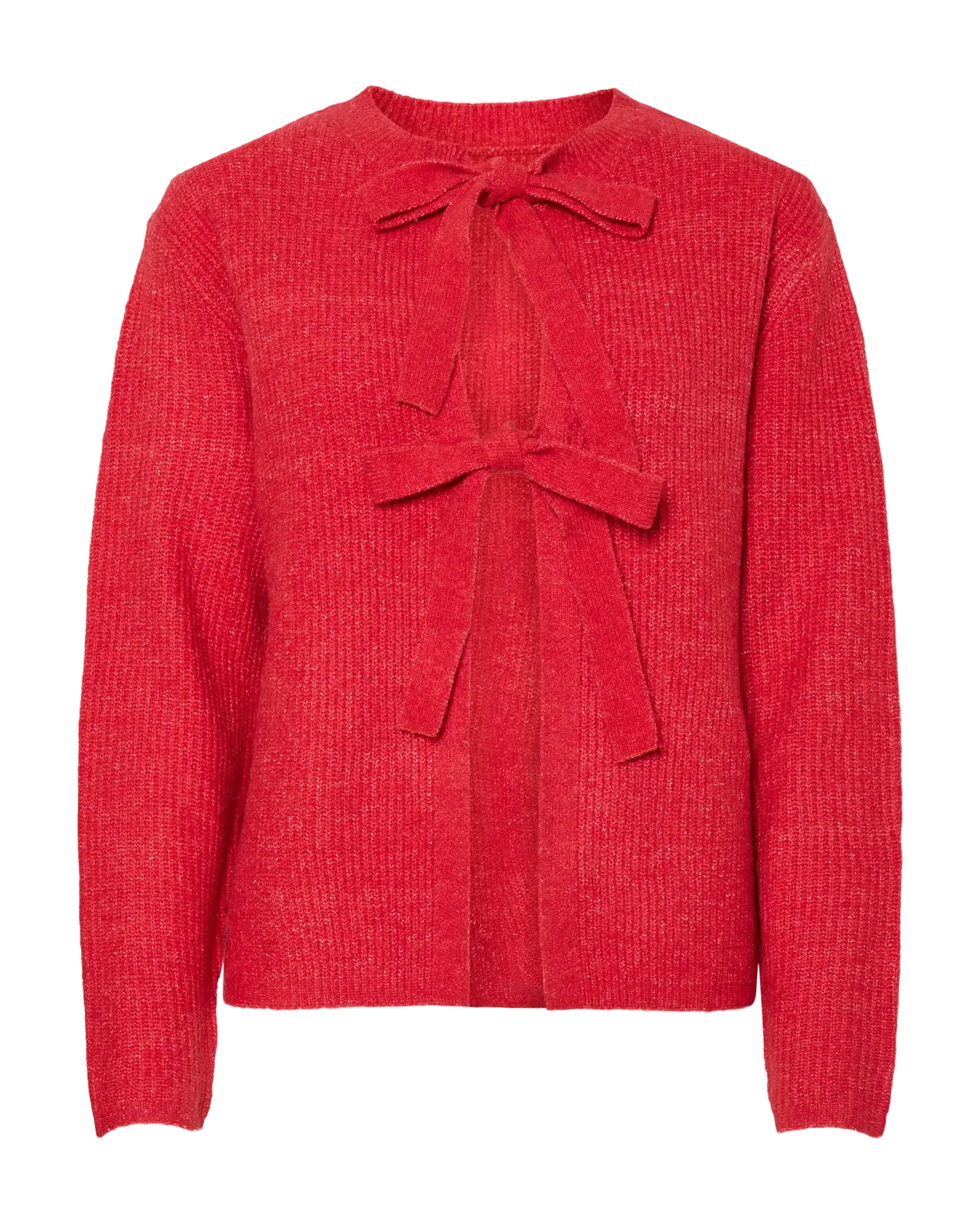 Silly Rev Tie Knit Cardigan - Goji Berry Melange