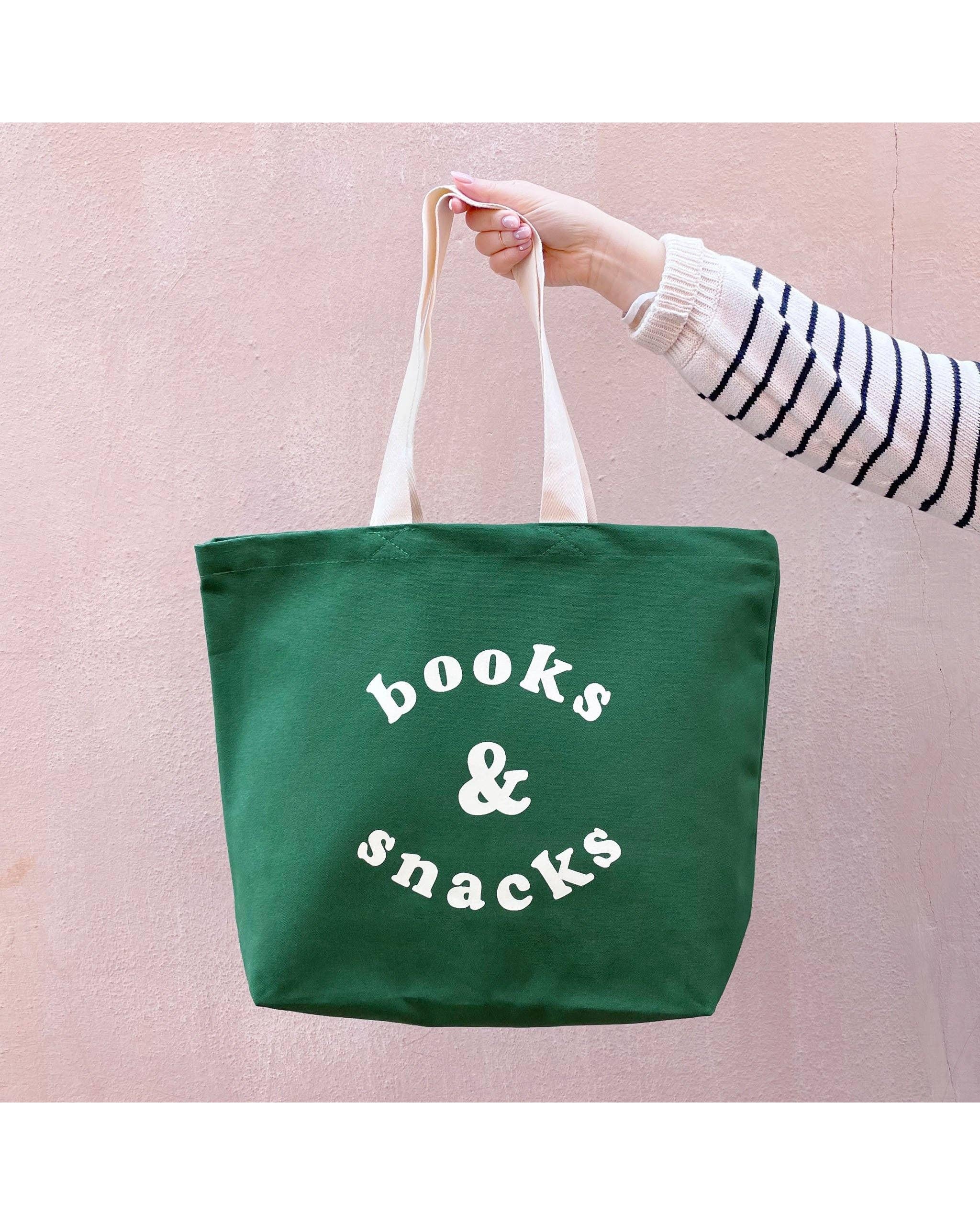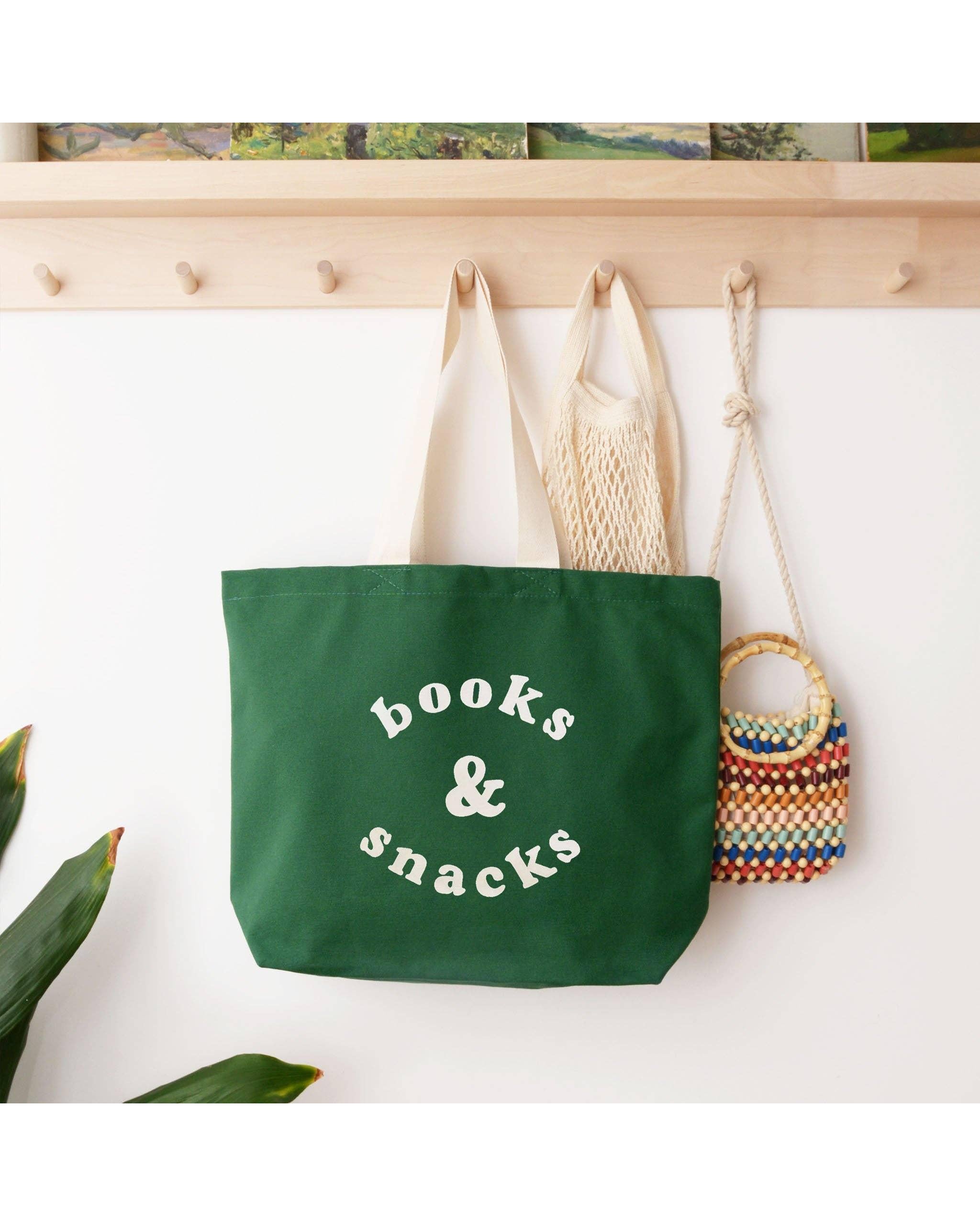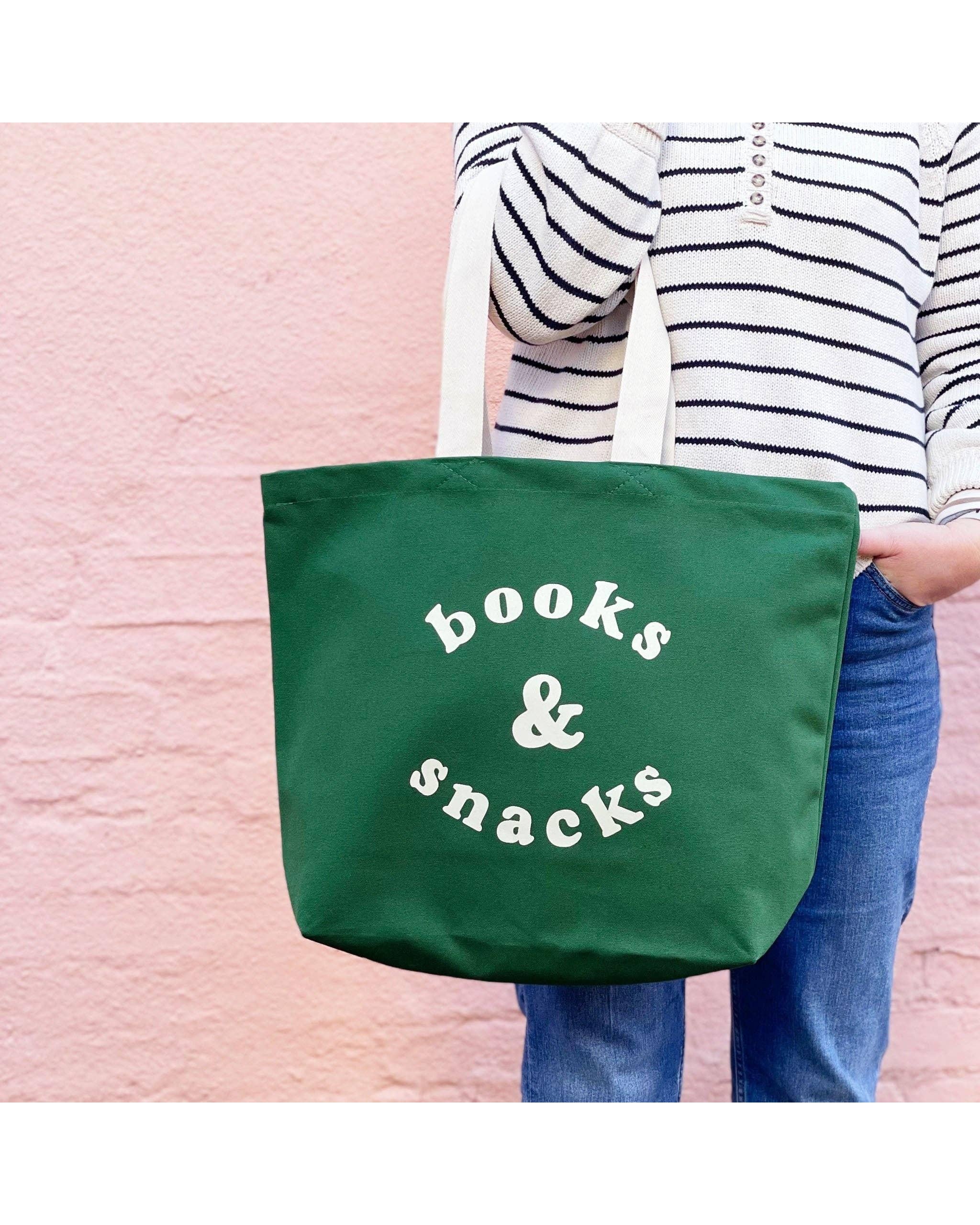 - Books & Snacks - Forest Green Canvas Tote Bag