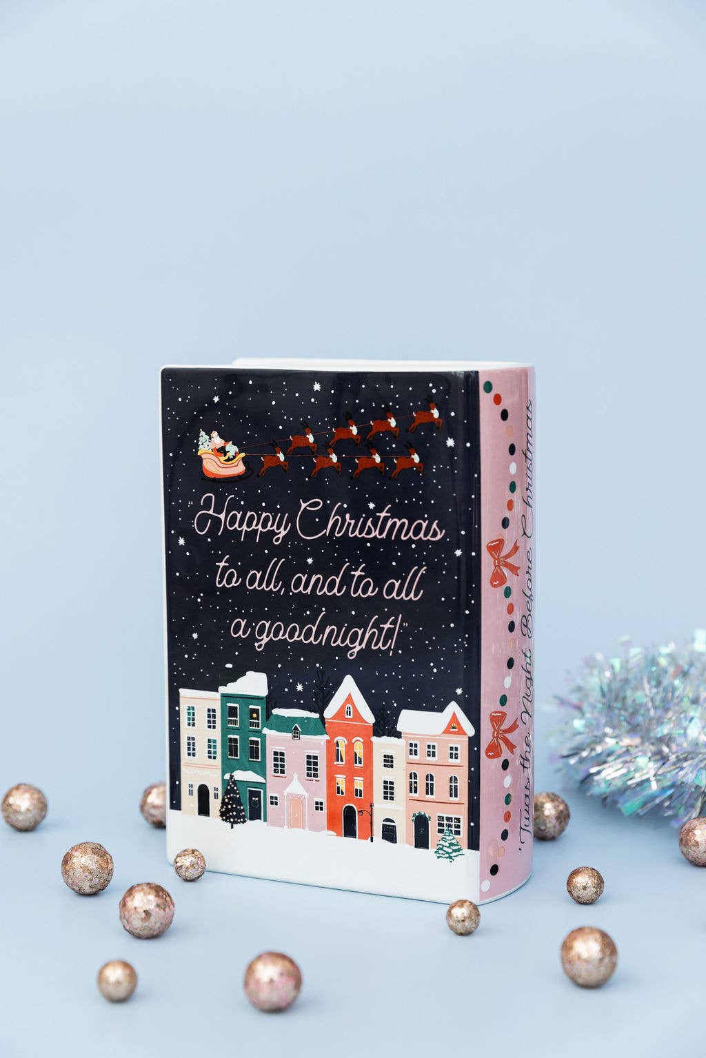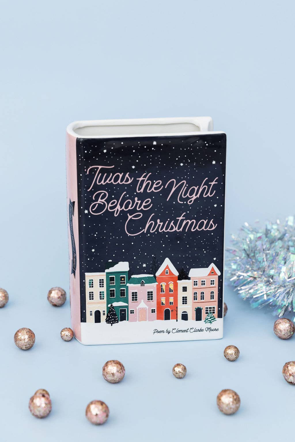 Take your love for the classics one step further with our ceramic decorative books. Featuring artwork influenced by Clement Clarke Moore's classic poem Twas the Night Before Christmas and a multifunctional design, this unique book-shaped vase is sure to dress up any room. Fill this large ceramic vase with fresh flowers or your favorite writing utensils to adorn your space with the most practical bookish charm.