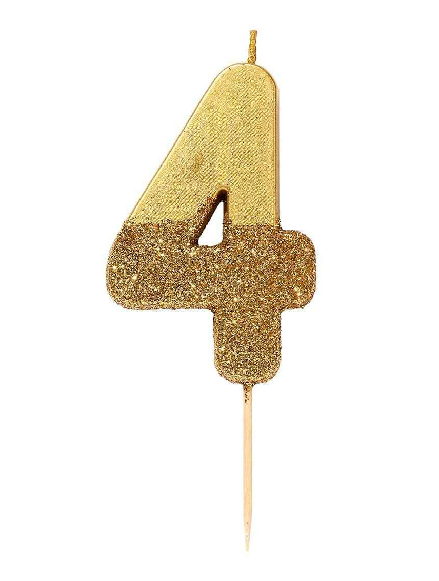Here we have the 4 Gold Glitter Candle from Talking Tables. Celebrate your special big day with this number 4 gold glitter dipped candle.Perfect for popping on a special birthday cake!