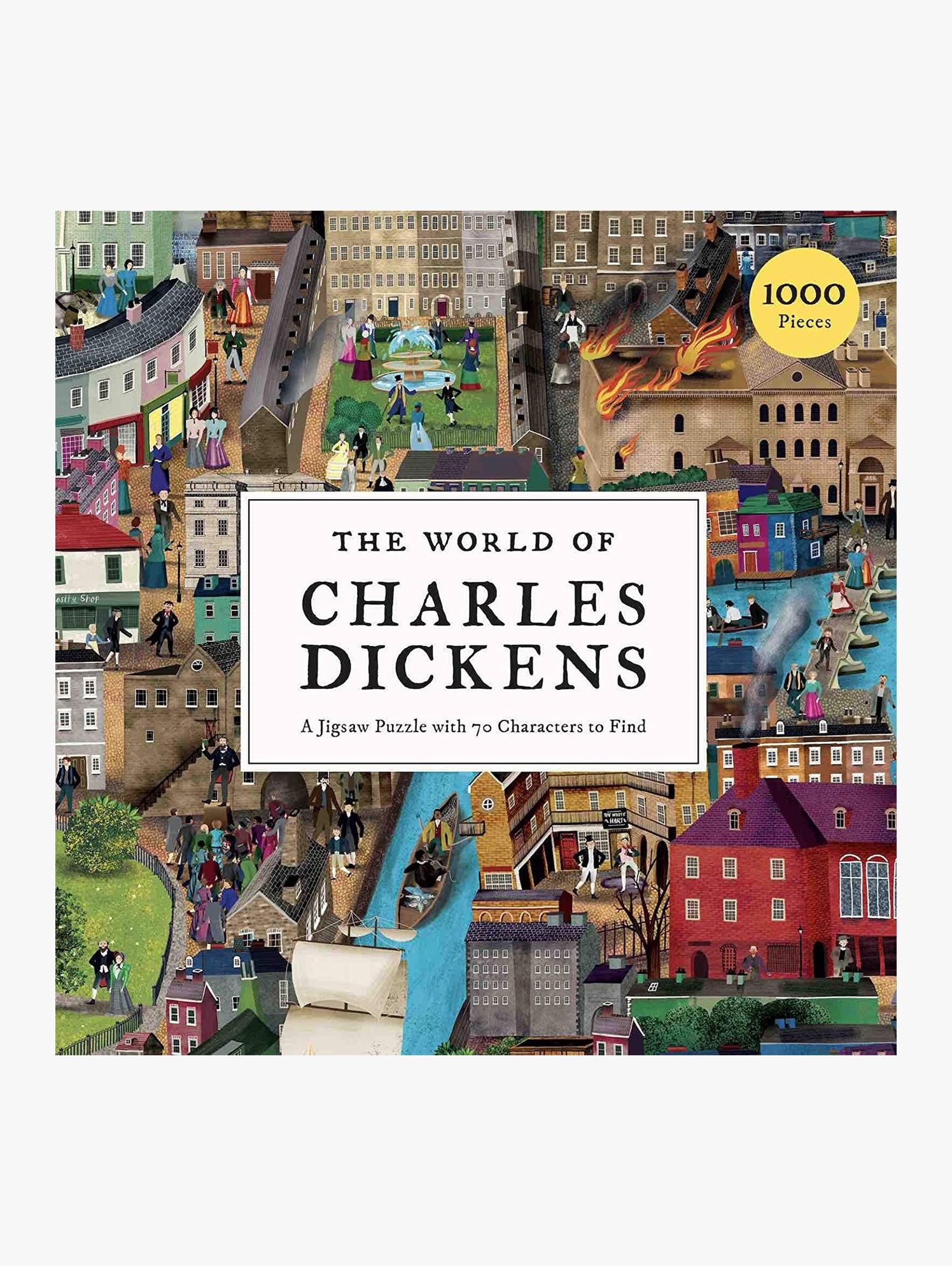 You're looking at the World of Charles Dickens Jigsaw from Laurence King. Venture into the realm of Dickens's imagination in this 1000-piece jigsaw. Brave the back alleys to find Fagin's den, and dare Scrooge's scowl by observing him threatening his bookkeepers with unemployment. Dickens himself and his Victorian contemporaries can be found among the host of unforgettable characters from his famous novels. From the villainous comedy of Uriah Heep peeking out of a window to the universal heartache represented by Miss Havisham's stopped clock, Dickens fans will feel no need to ask for more.
