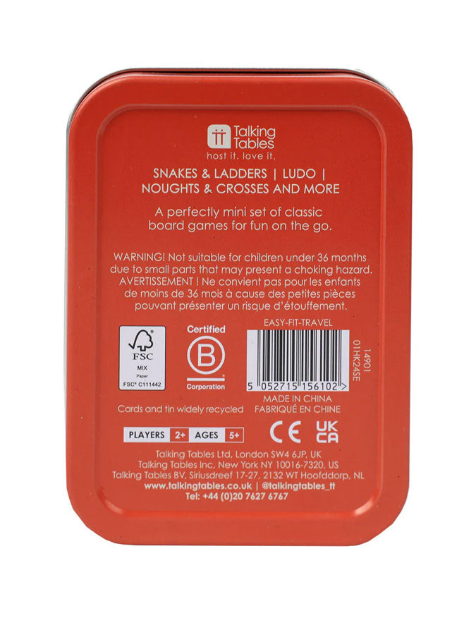 Say hello to Timmy the Turnip Travel Games by Talking Tables - a fun alternative to screens! Pick your favorite from a selection of classic games, such as snakes & ladders, noughts & crosses, card games, 'What am I?', and 'Would you rather?' - all conveniently stored in a travel-sized tin.