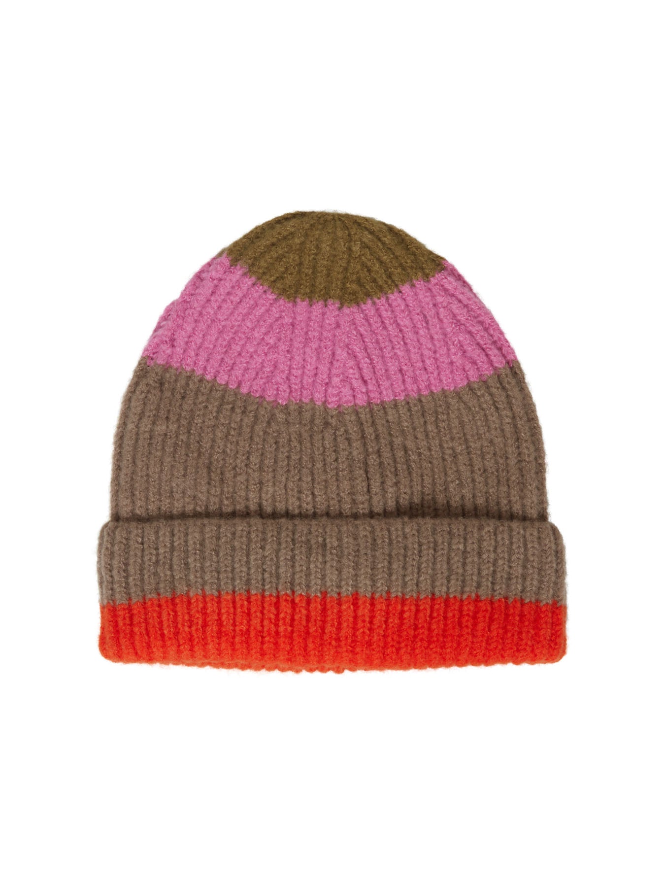 Introducing the Matiki Hat from Ichi - the must-have accessory for staying stylish in chilly weather. Crafted from a cosy acrylic blend, this vibrant, multi-colored beanie will keep you warm for years to come. Featuring a stunning mix of orange, taupe, and pink it easily complements any outfit.