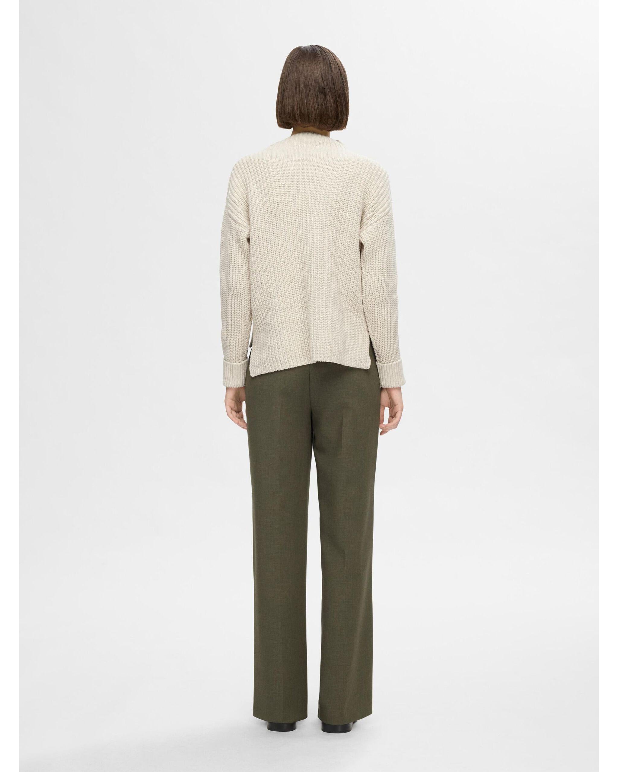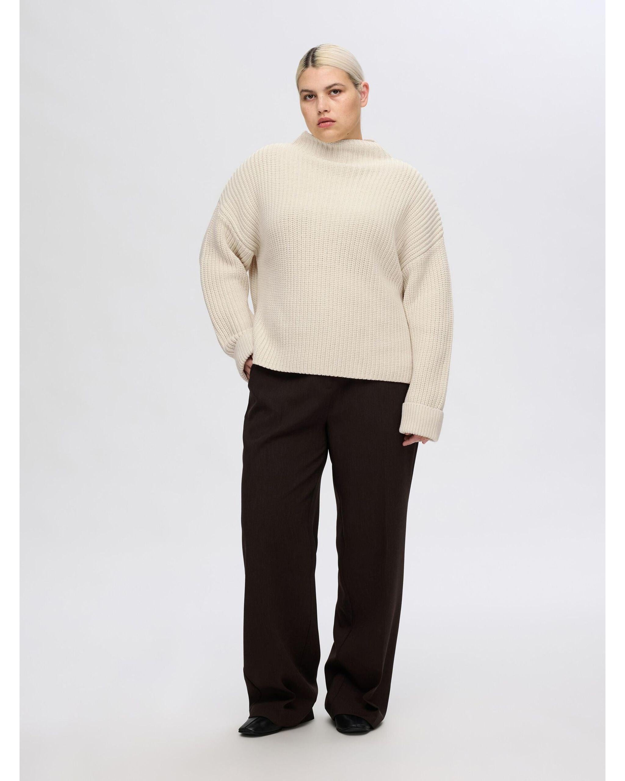 Here we have the Selma LS Knit Pullover in Birch from Selected Femme. It’s time to update your knitwear collection, and what’s better than cosying up in an oversized jumper? The dropped shoulders give this piece a super relaxed look that complements the turned-up cuffs and slouchy effect of the high-low hemline. The wide funnel neck looks chic and keeps you warm at the same time. Style yours with mom jeans in a dark wash and a pair of chunky trainers.