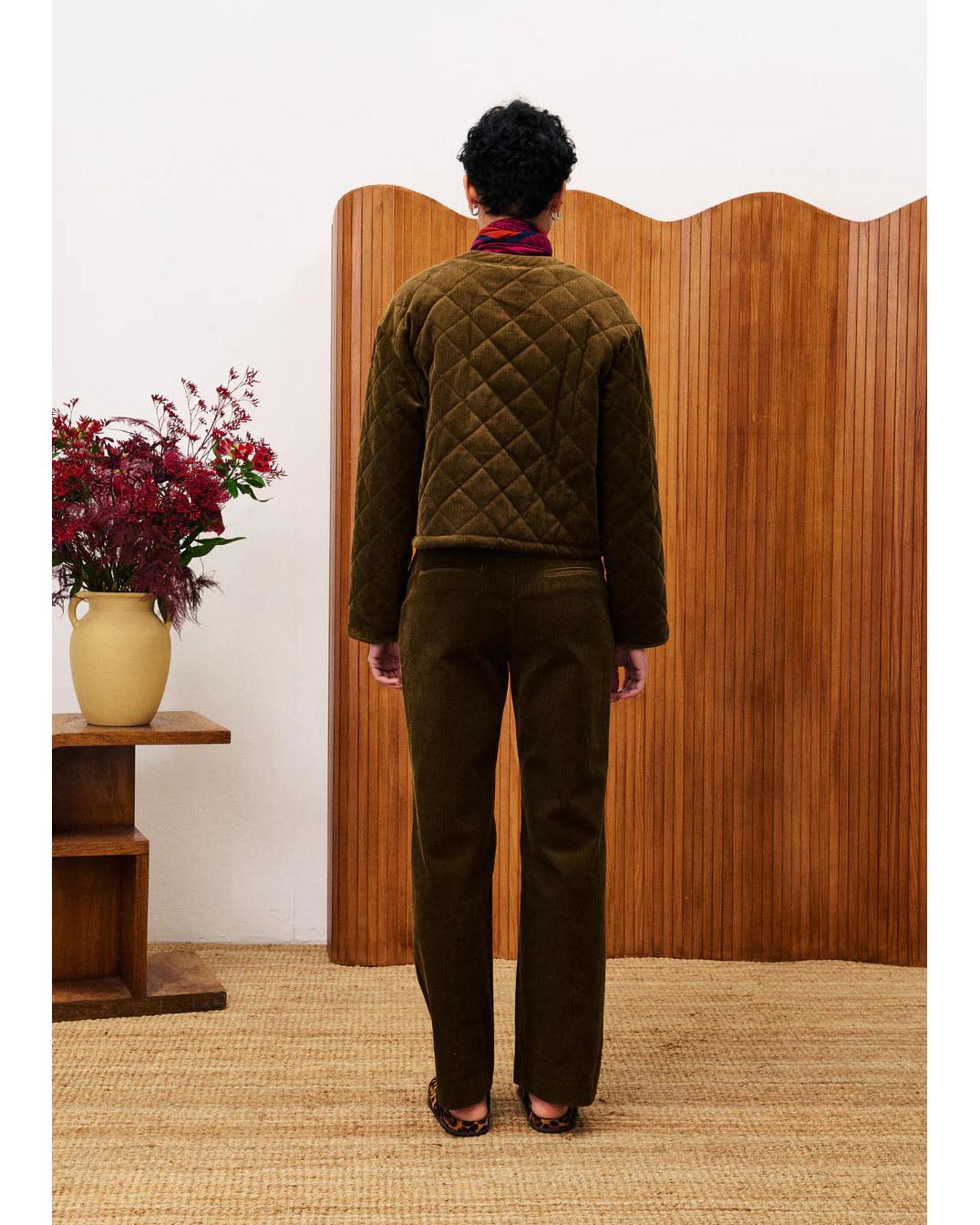 The Crocus khaki jacket features a quilted velvet design crafted from exclusive FRNCH fabric, offering a refined texture and durability. Its round neck and button closure provide a structured yet classic silhouette, while two practical pockets add functional sophistication. Made from 100% cotton, this jacket ensures breathability and comfort, making it an expert choice for those seeking quality and timeless style.