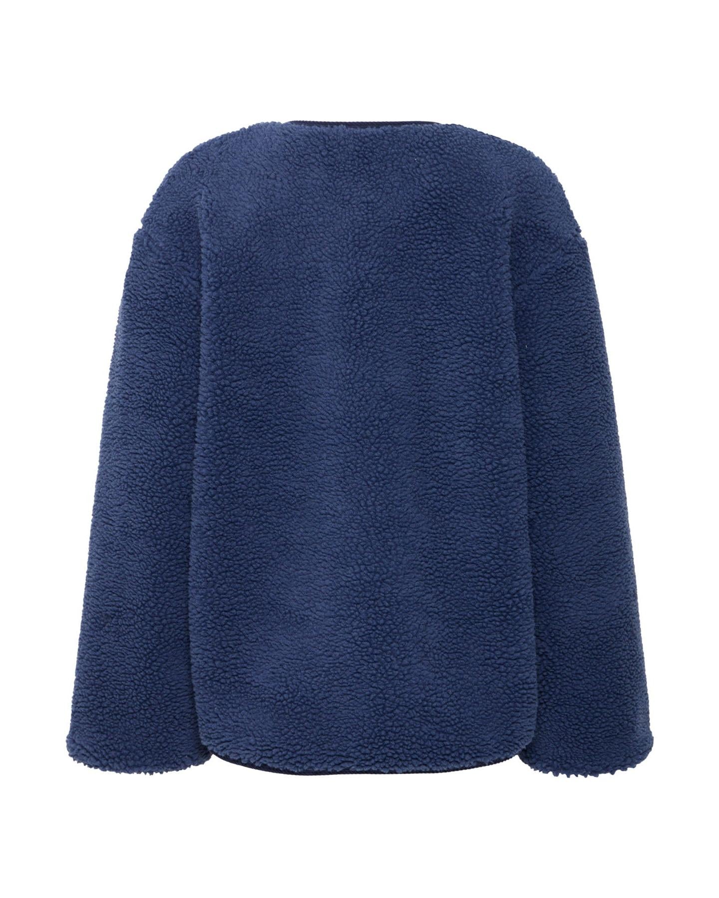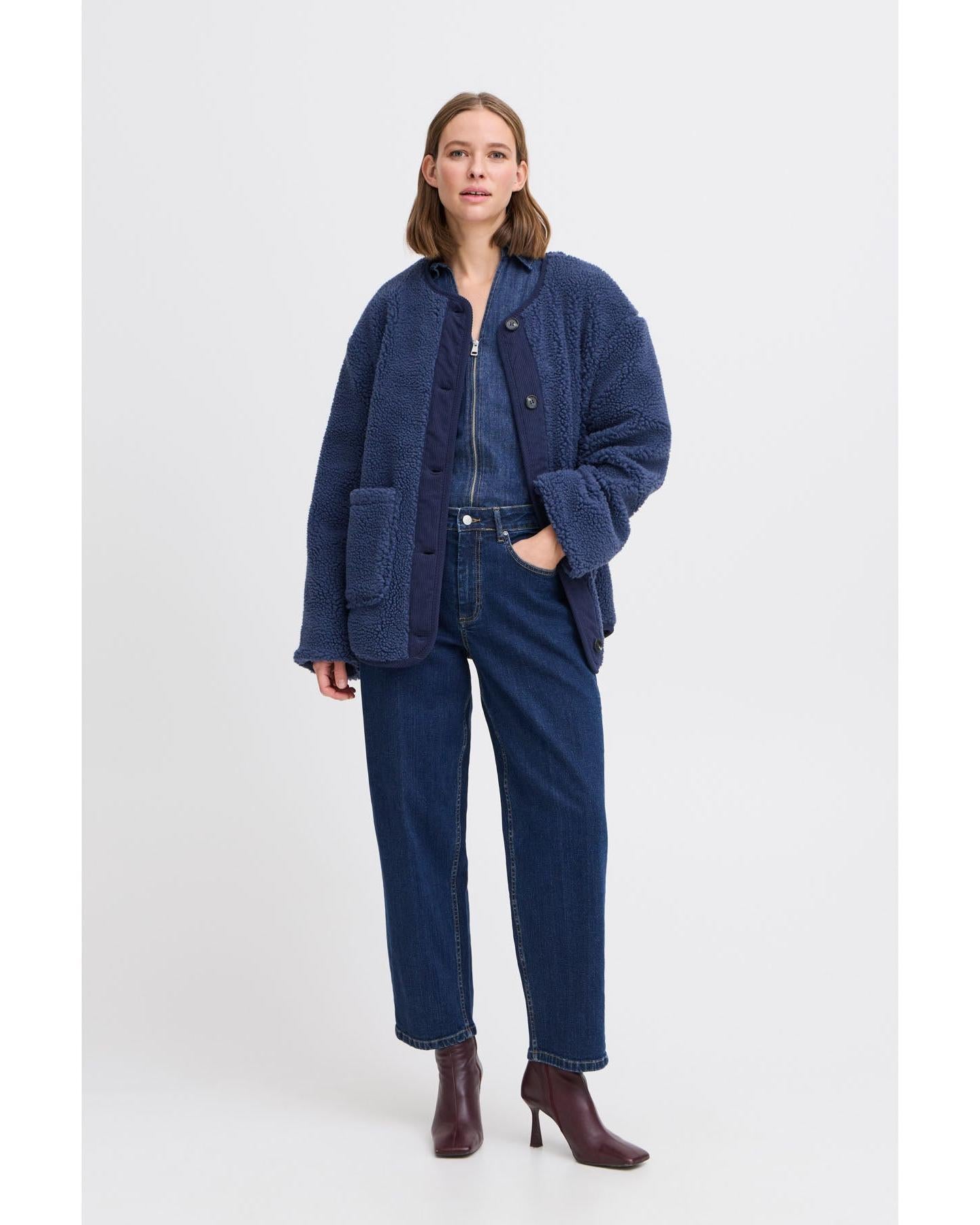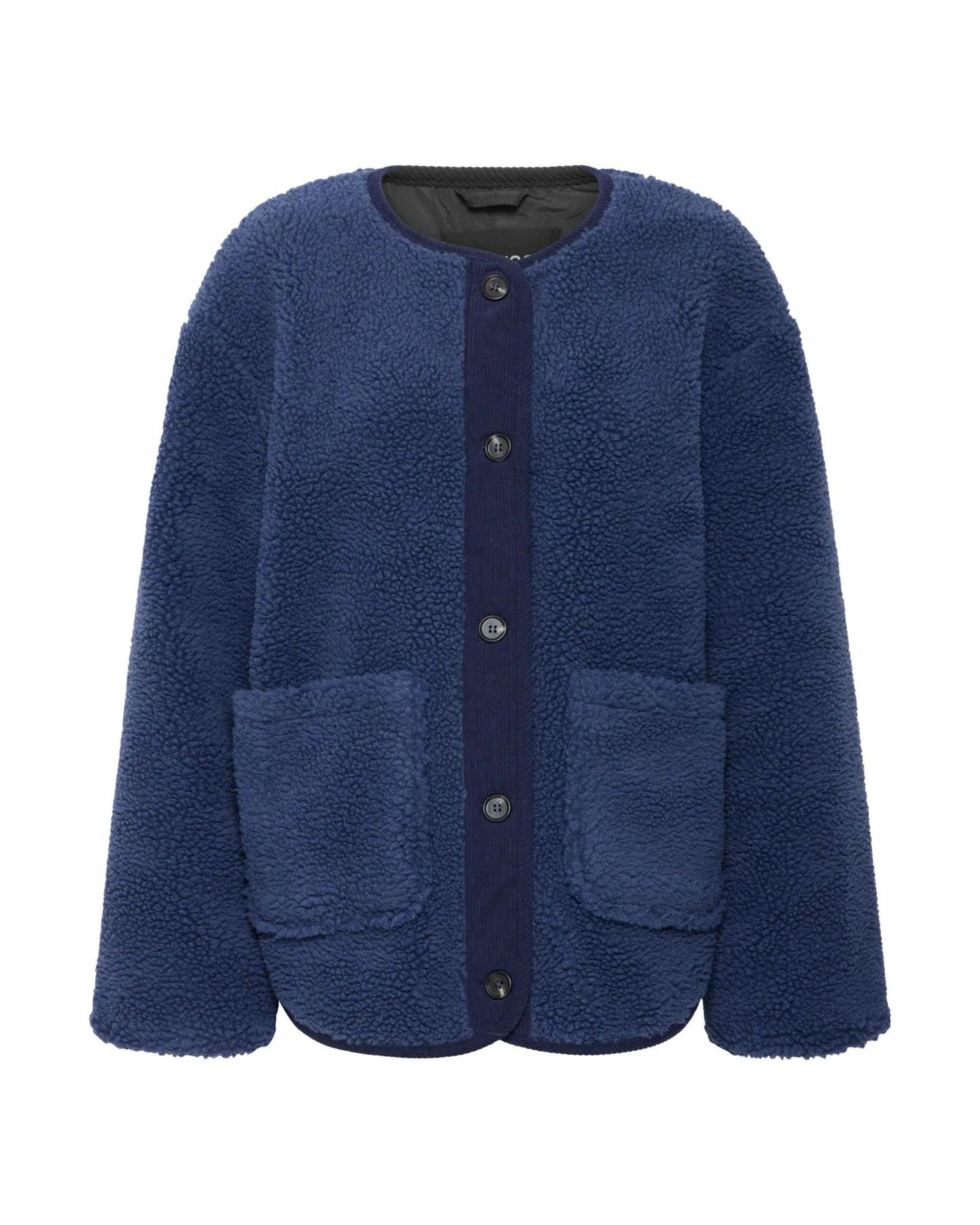 Effortlessly stylish and cosy, the Cotty Jacket is crafted from soft sherpa fabric in a dark denim mix. Designed with a relaxed fit, crew neck, and button-down front, it offers a laid-back yet refined look.