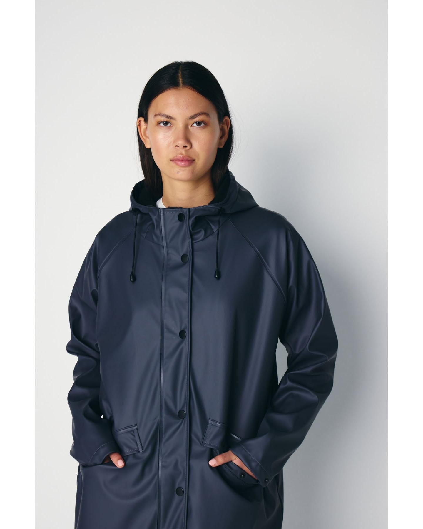 Here we have the Tazi Jacket Navy from Ichi. A wardrobe staple for a typical British winter, this lovely mid length, hooded rain coat will protect you from the rain whilst looking good too. The double fasten front with a full length zip and poppers all the way down ensure that you will be nice and snug, and the generous front pockets are perfect for keeping your belongings dry and your hands warm!