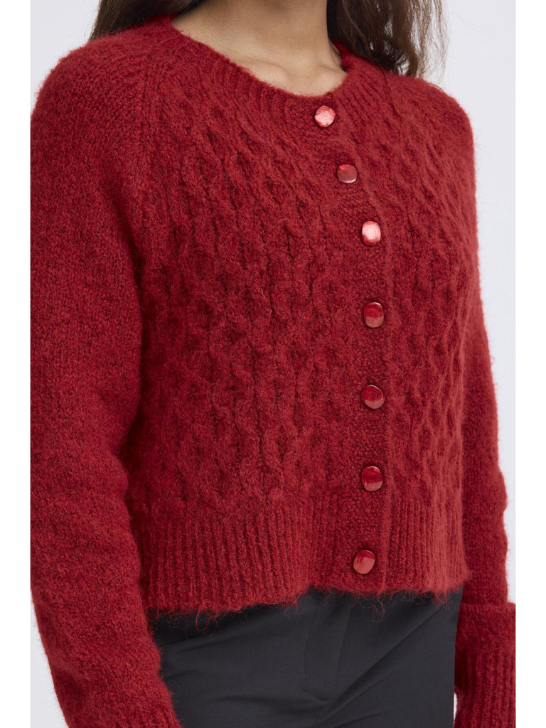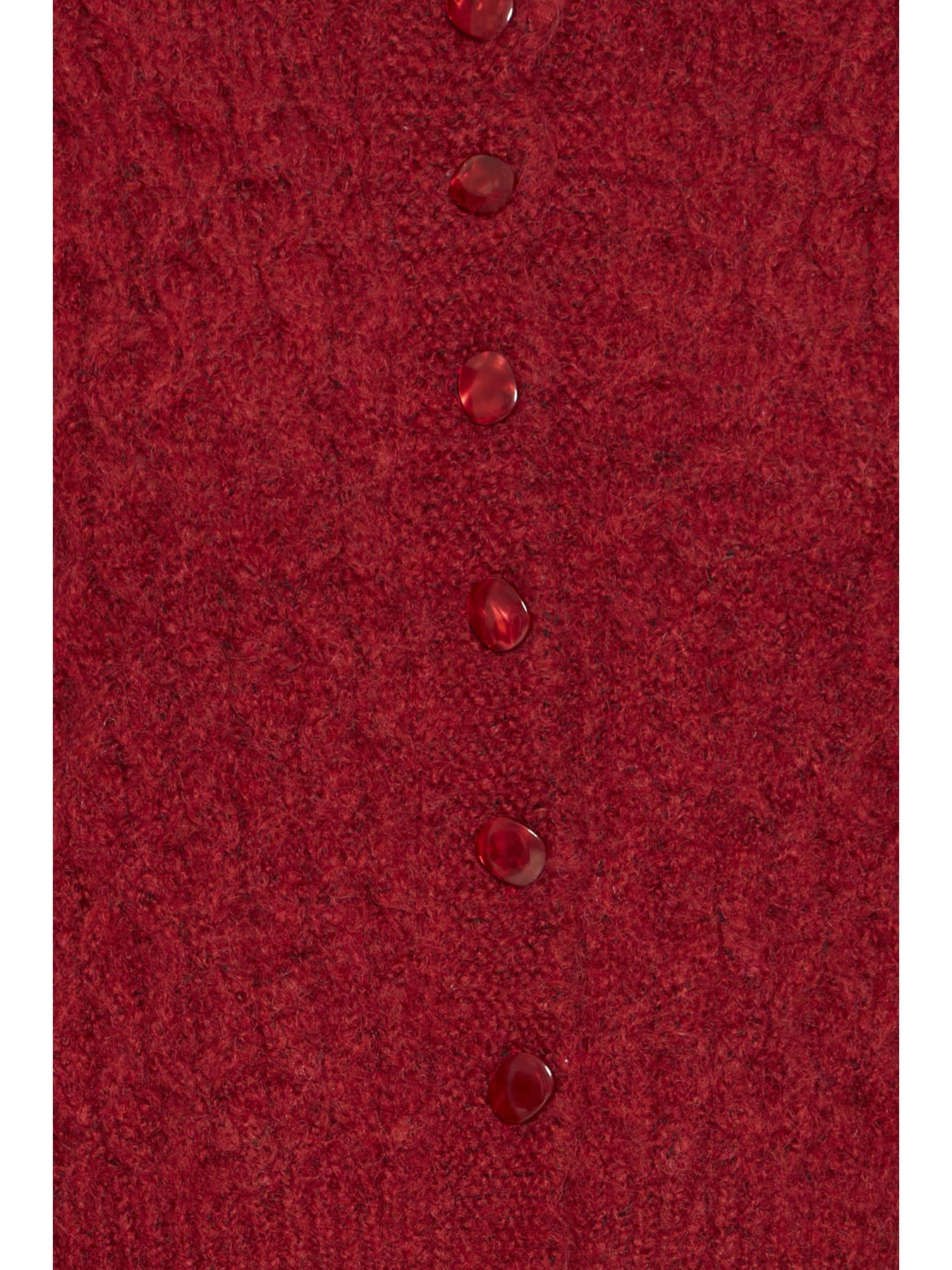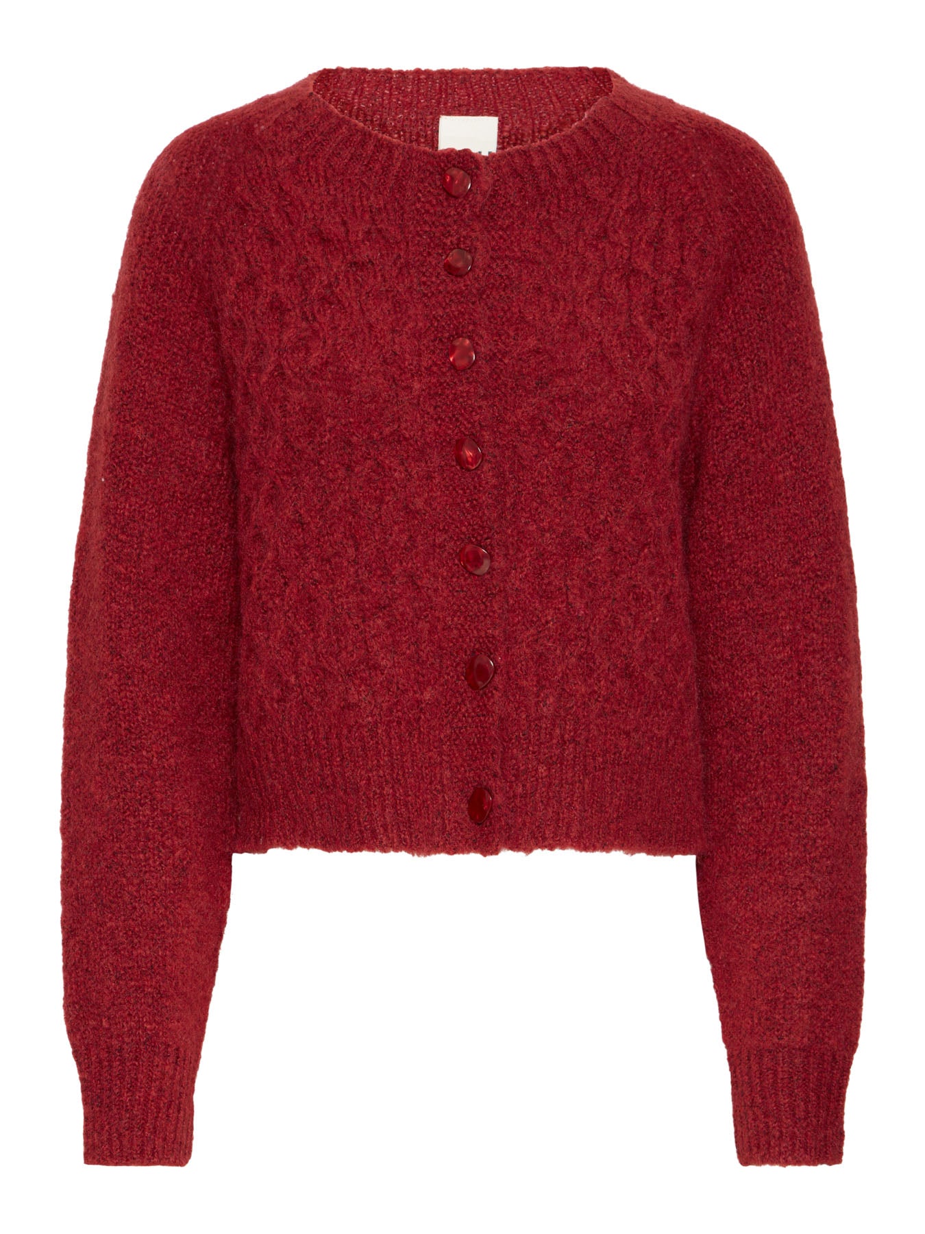 Cropped cardigan features a relaxed fit and cozy knit texture, classic crew neckline, and button-front closure. Ideal for layering and versatile occasions, combining comfort and style for effortless everyday wear.