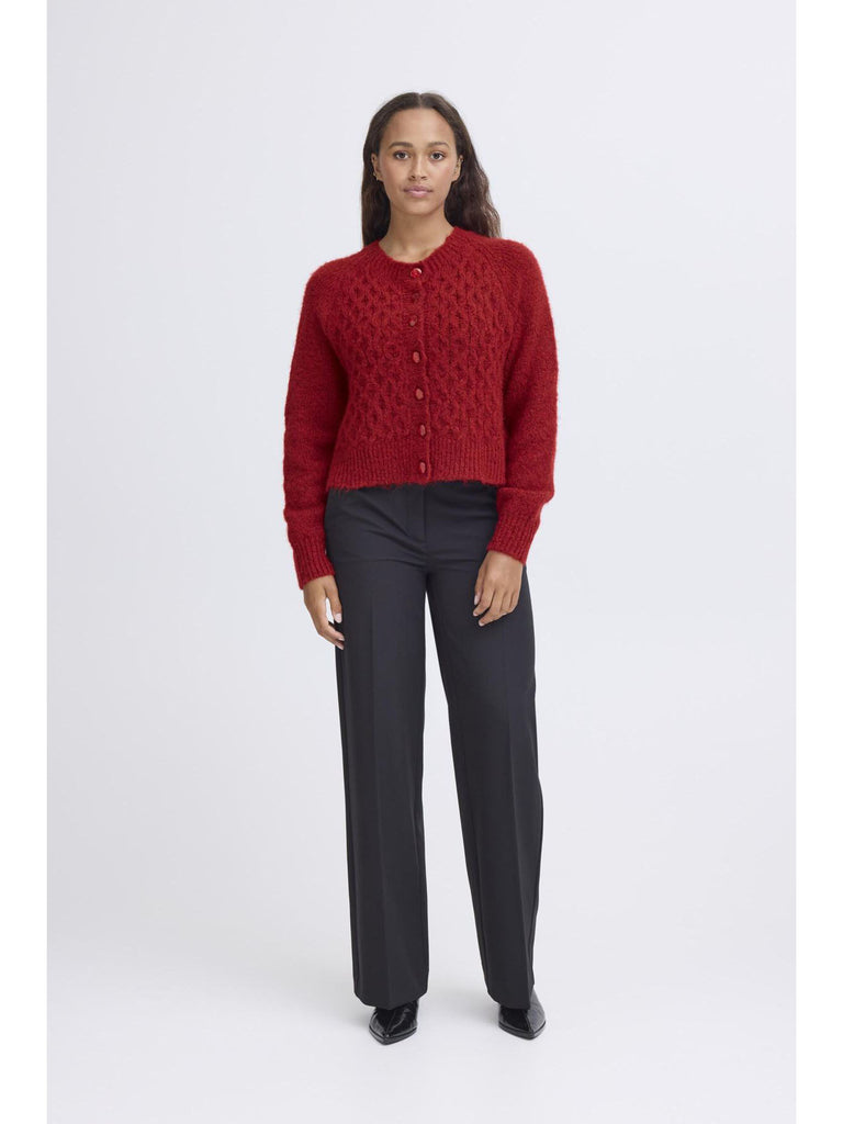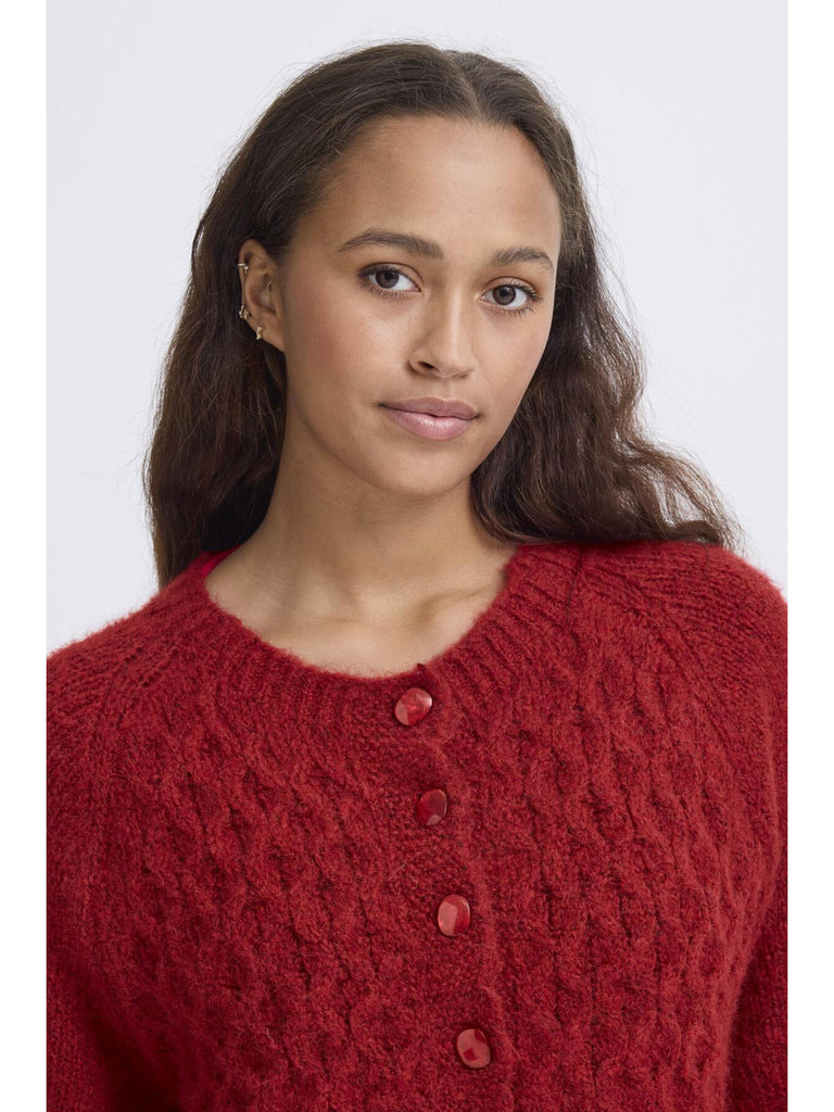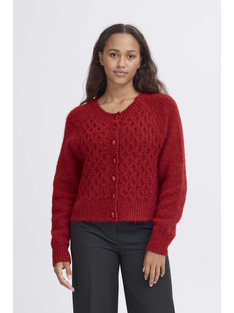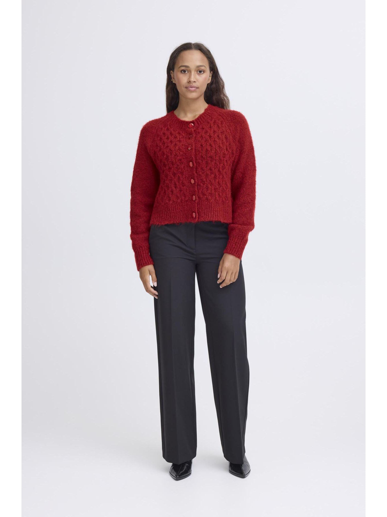 Cropped cardigan features a relaxed fit and cozy knit texture, classic crew neckline, and button-front closure. Ideal for layering and versatile occasions, combining comfort and style for effortless everyday wear.