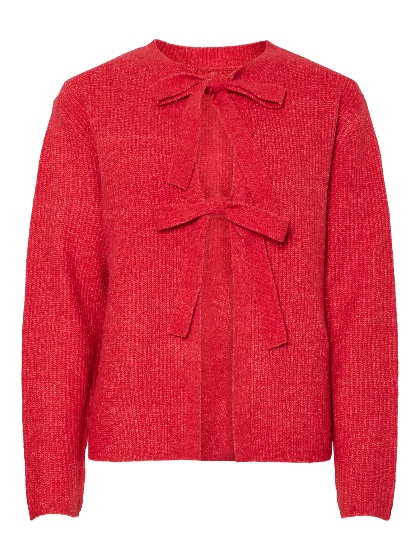 Silly Rev Tie Knit Cardigan - Goji Berry Melange