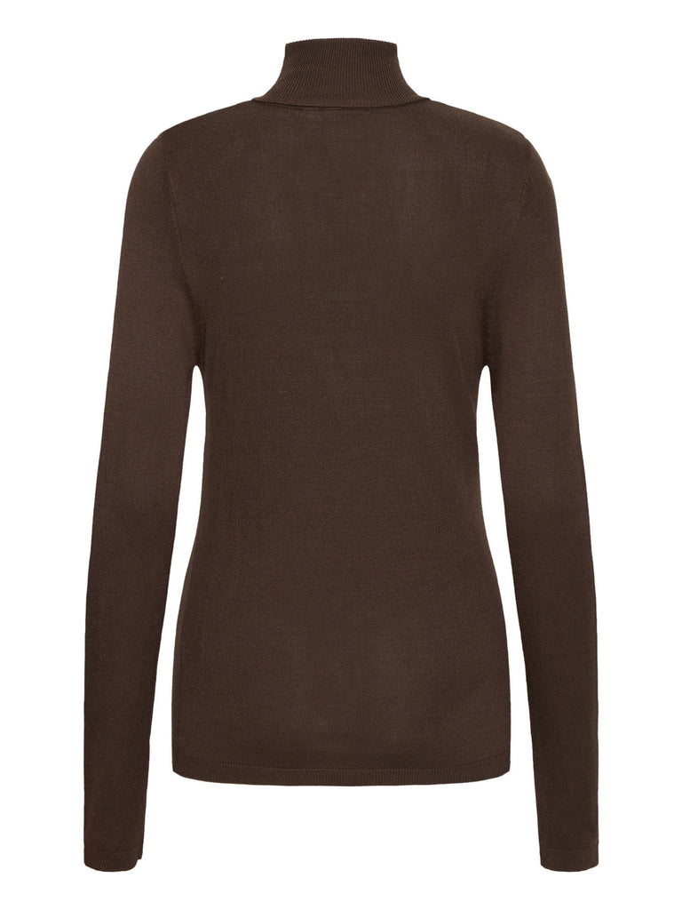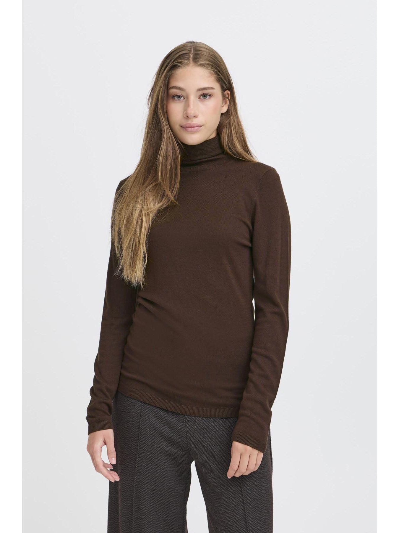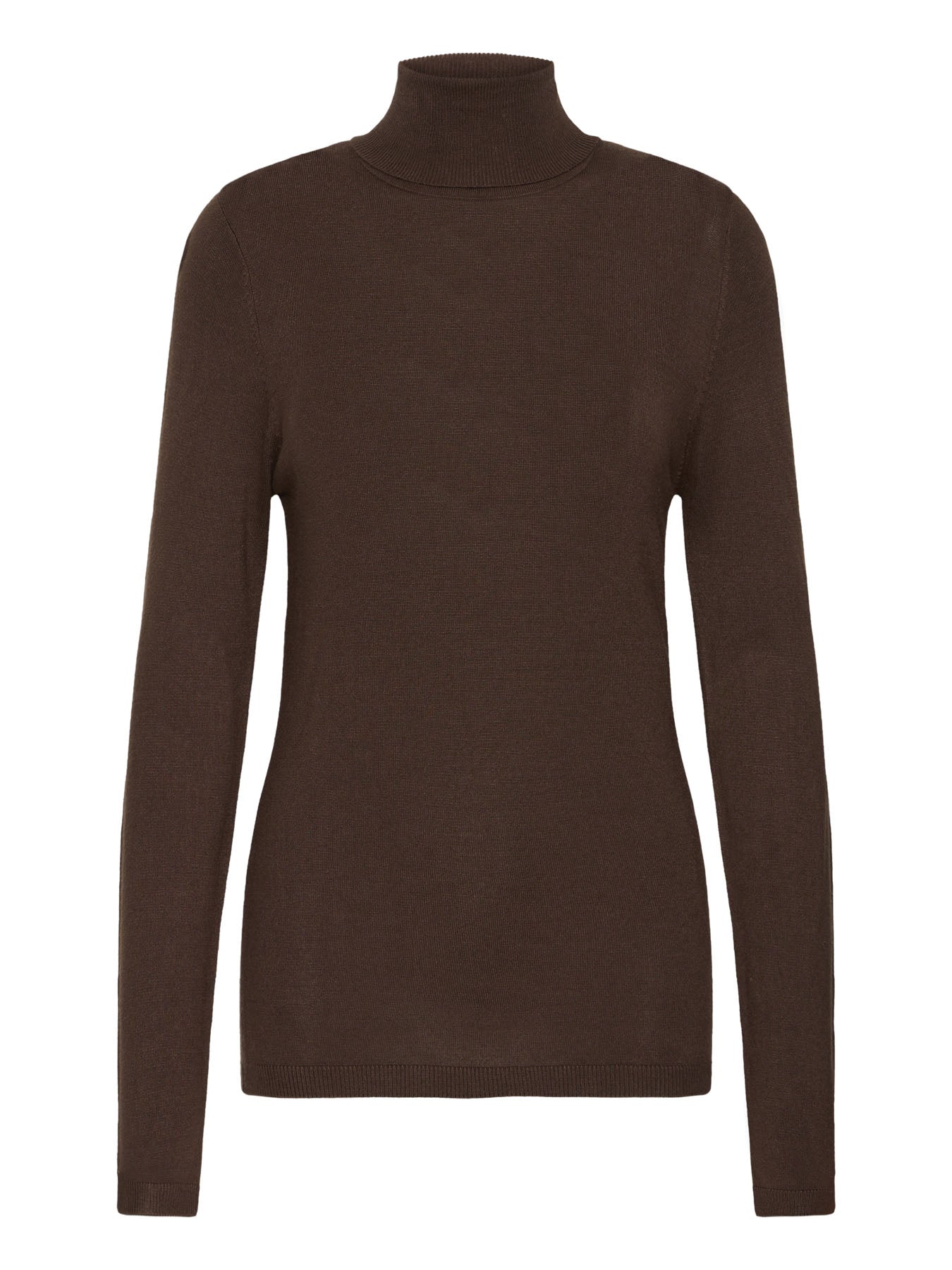 Introducing the Mafa Roll Neck in Coffee Bean from Ichi. A must-have for your wardrobe, this ultra-soft piece is perfect for both dressing up and dressing down. With its slim fit and solid brown colour, it's the perfect layering essential for those cooler autumn days.