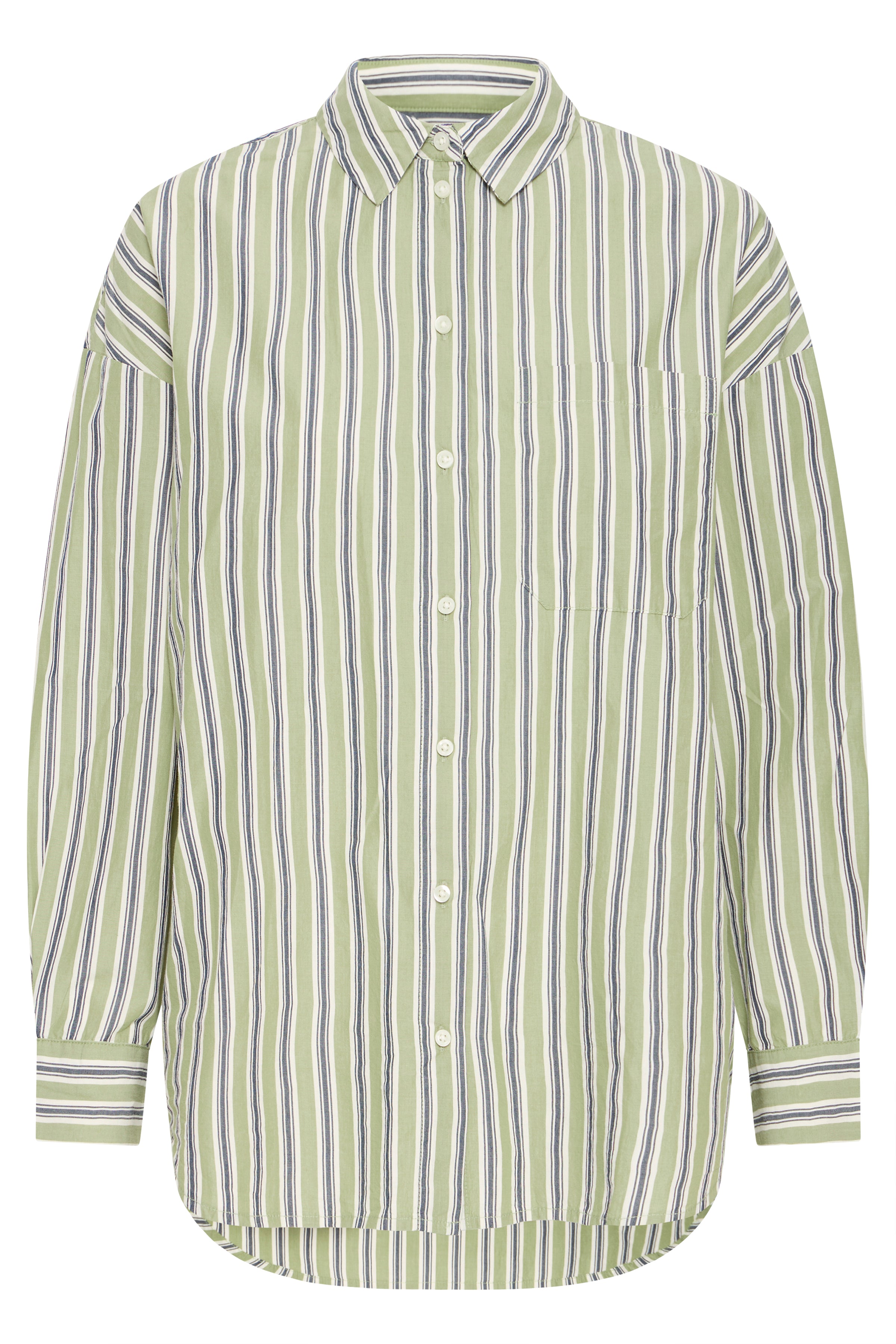 The Fluca Shirt is an effortless everyday piece with a clean, modern feel. Designed in a relaxed, boxy fit, it features a classic collar and an all-over green stripe for a fresh, timeless look. Easy to wear on its own or layered, this shirt offers versatile styling across seasons.