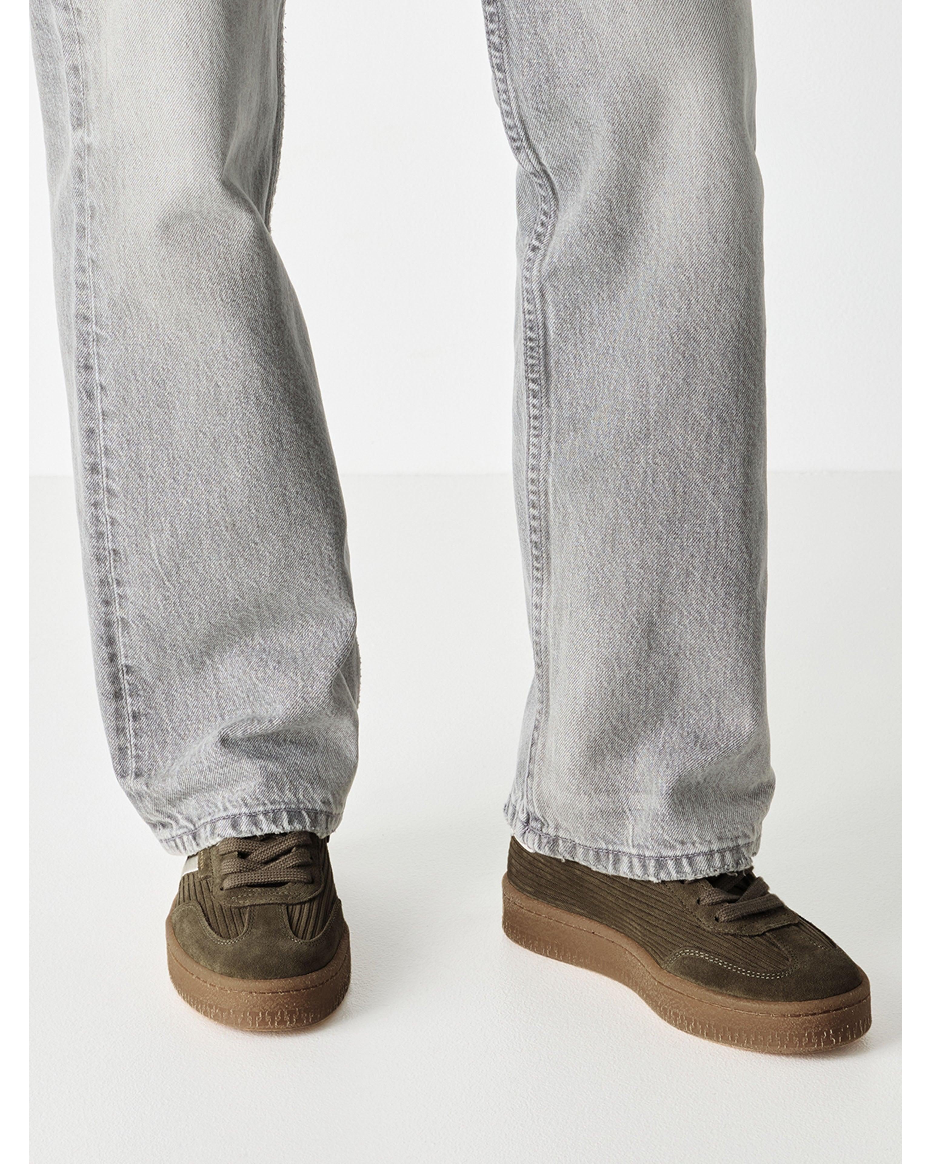 - Olive cord leather trainer