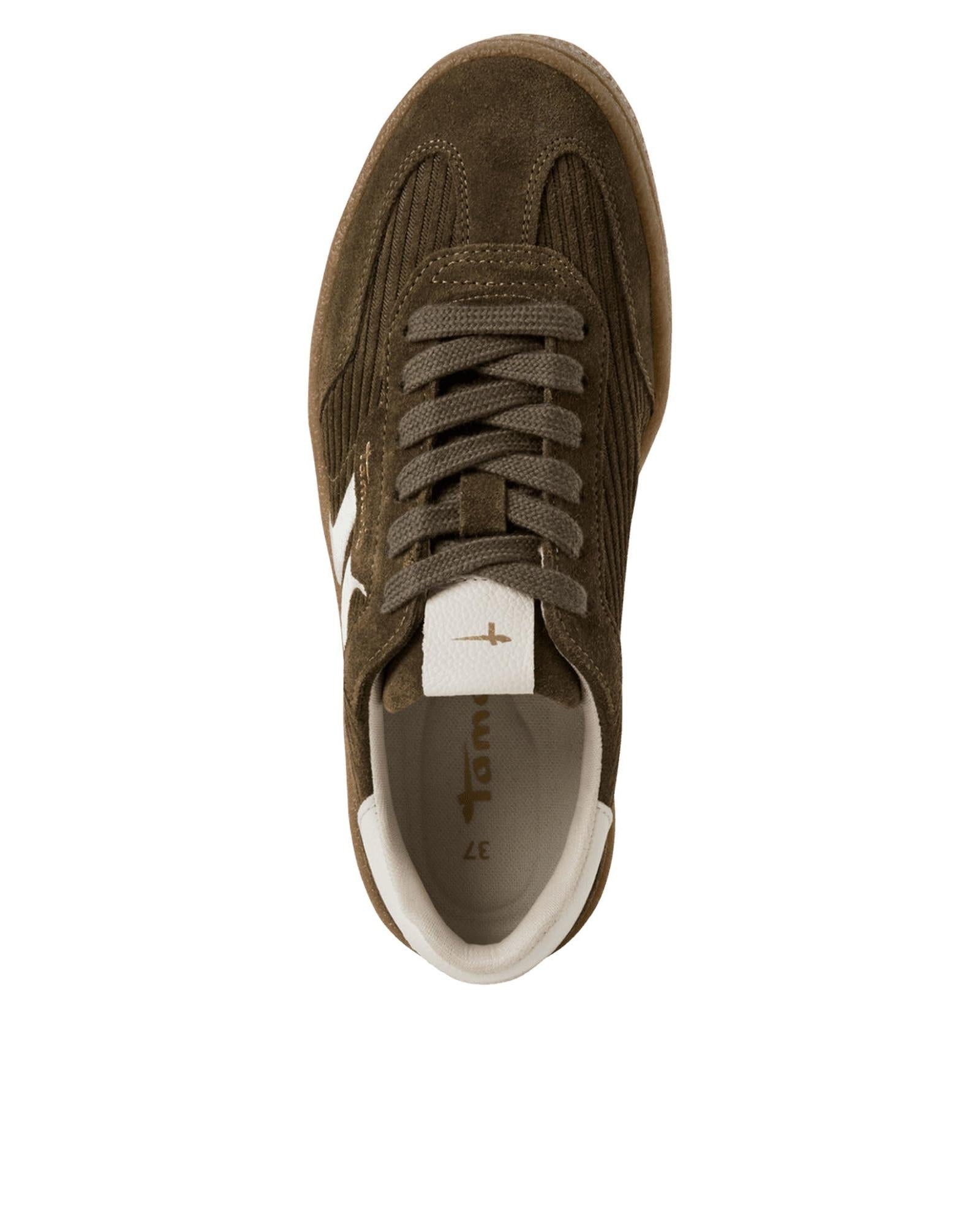 A fresh take on casual style, this olive green lace-up trainer from Tamaris features a unique cord design with off-white leather trim for subtle contrast. Crafted in premium leather, it's a standout choice for everyday wear with a modern edge.