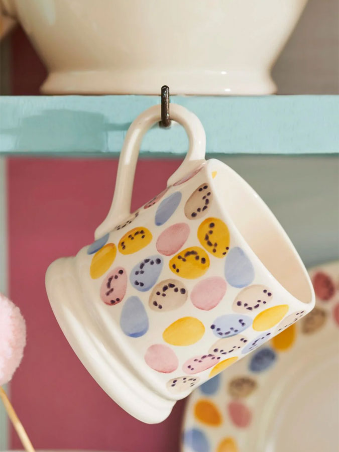 Here we have the Mini Egg 1/2 Pint Mug from Emma Bridgewater. A hand decorated, English earthenware mug that is covered in an array of mini eggs that look good enough to eat! Ideal for daily use and easily cleaned in the dishwasher, this mug is perfect for chocolate lovers and spring fanatics alike.