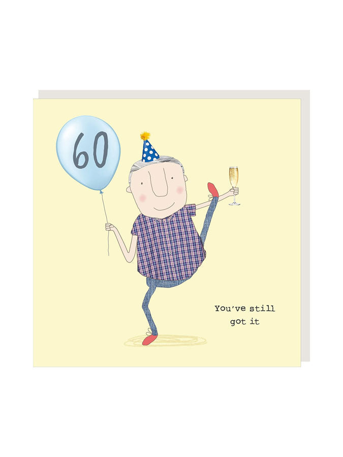 Introducing the Boy 60 Still Got It Card from Rosie Made a Thing. This amusing card is guaranteed to bring a smile to the recipient's face. Inside is left blank for you to add your own personal touch.