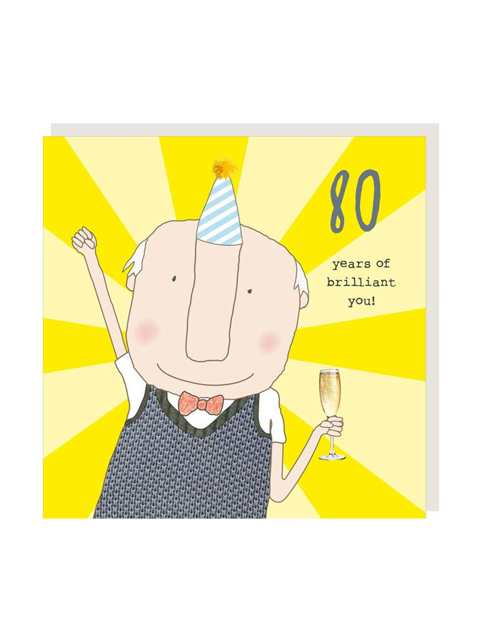 Introducing the Boy 80 Brilliant Card from Rosie Made a Thing. This amusing card is guaranteed to bring a smile to the recipient's face. Inside is left blank for you to add your own personal touch.