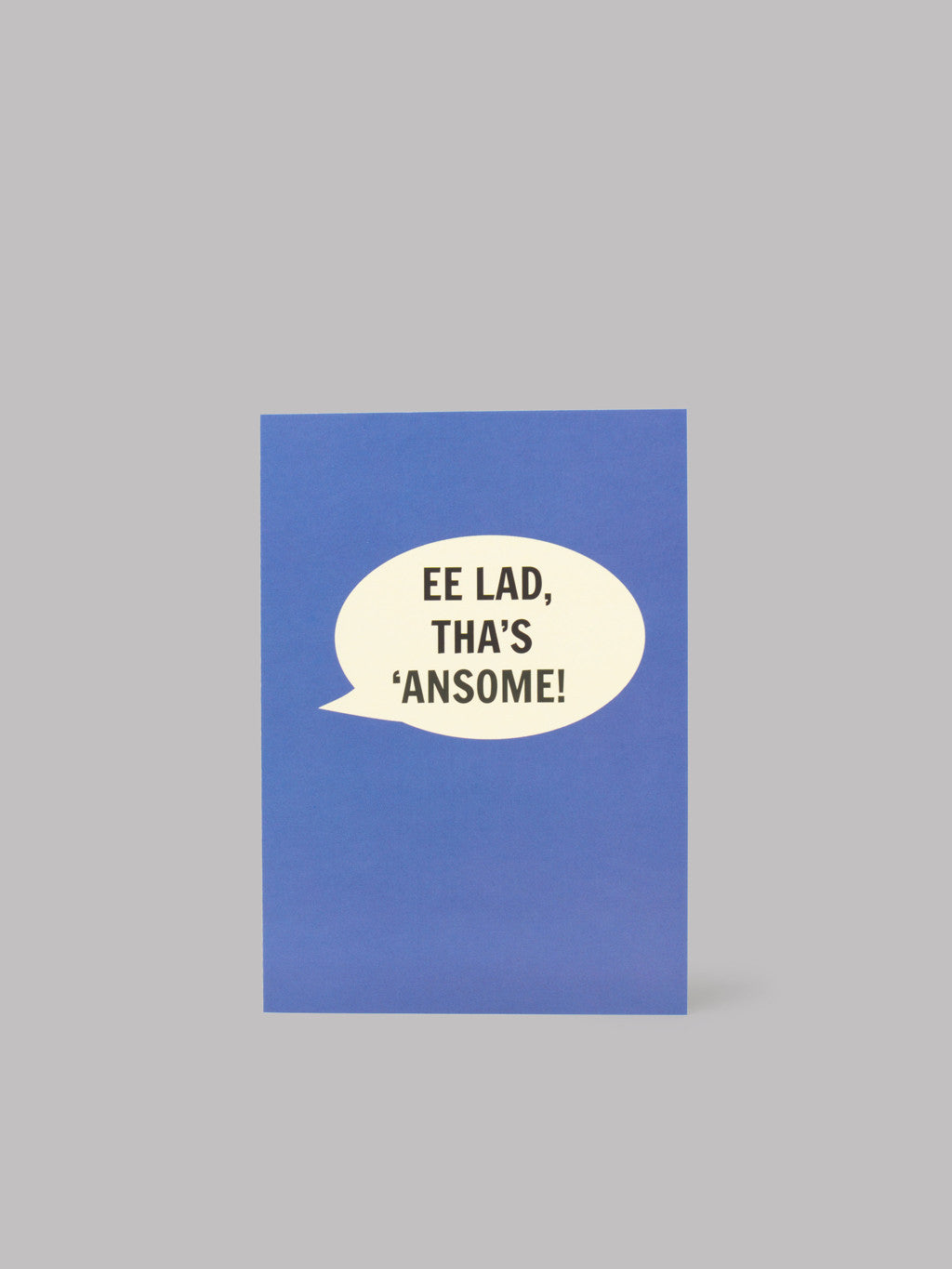 Dialectable cards are the bee's knees, great for any occasion; colourful, bold and always right. Just like us Yorkshire folk then 'ey! This card here says 'Ee Lad Tha's 'Ansome' a great card for a Yorkshire lad in need of a timely confidence boost.