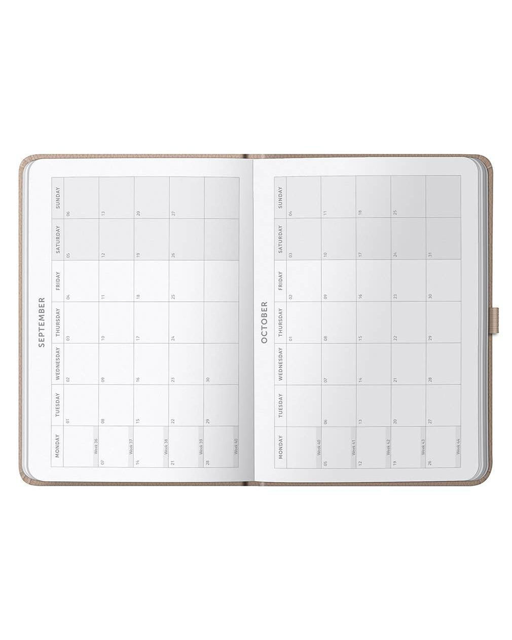 An A5-sized planner that runs from January to December 2026, featuring a luxurious fabric cover that's both stylish and practical. With its compact design, it easily fits in your handbag or on your desk, making it the ideal companion for your busy lifestyle.