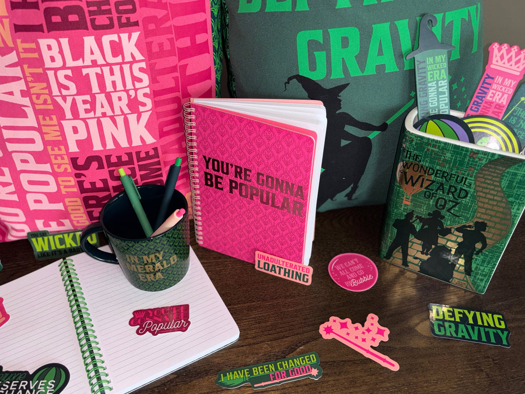 Cute notebooks make even the most mundane tasks a little more exciting. This one includes 160 college-ruled pages, pockets, and a metal spiral that ensures it stays flat when you need to jot something down. The notebook is encased in a durable hardcover and features a Wicked-inspired design, adding a touch of magic to your writing routine. Plus, it's conveniently mini-sized so you can stash it just about anywhere and be ready when inspiration strikes.