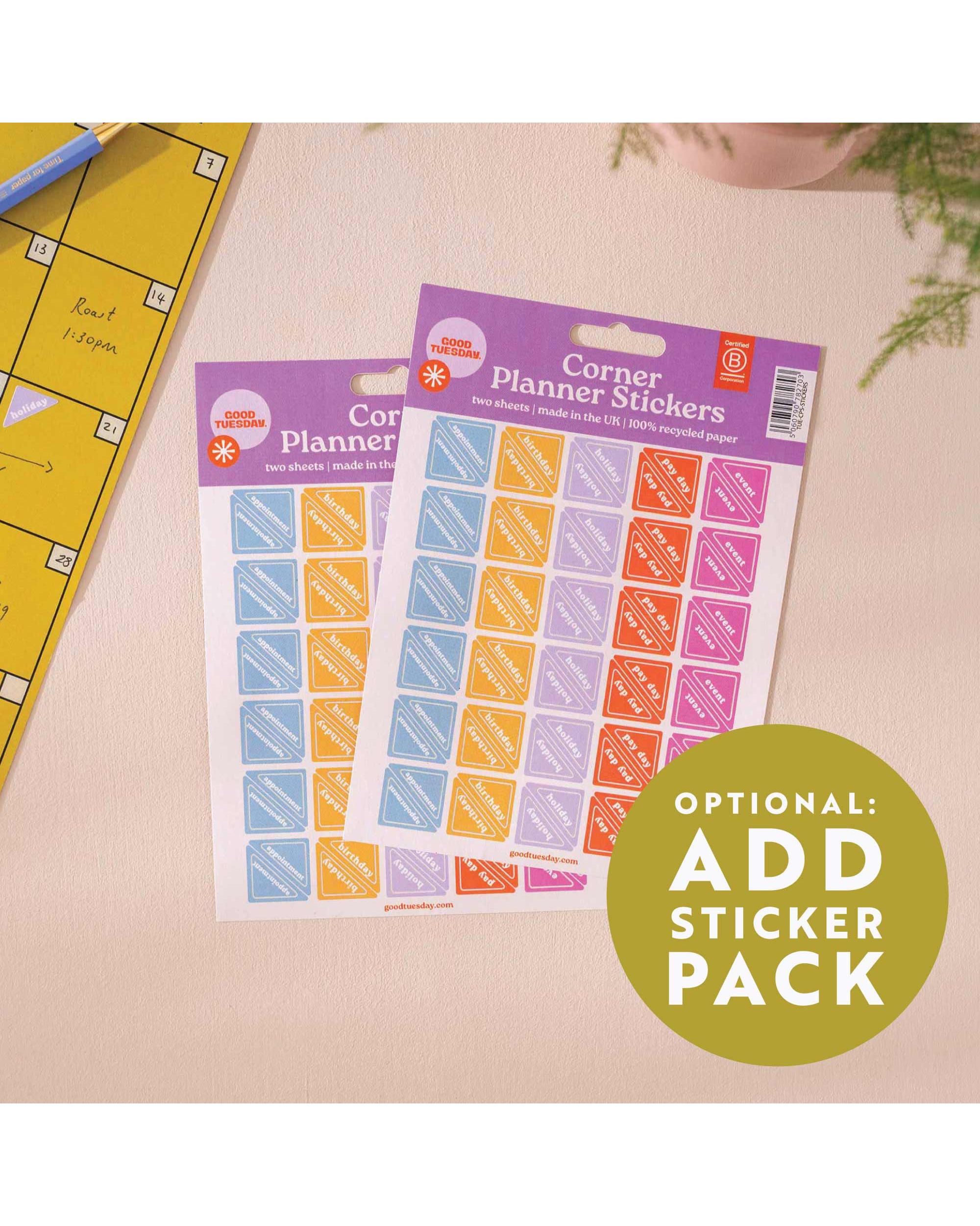 Each month has its own bright personality, with a clean, full grid (Monday–Sunday) and space to write all the things; birthdays, deadlines, appointments, you name it.