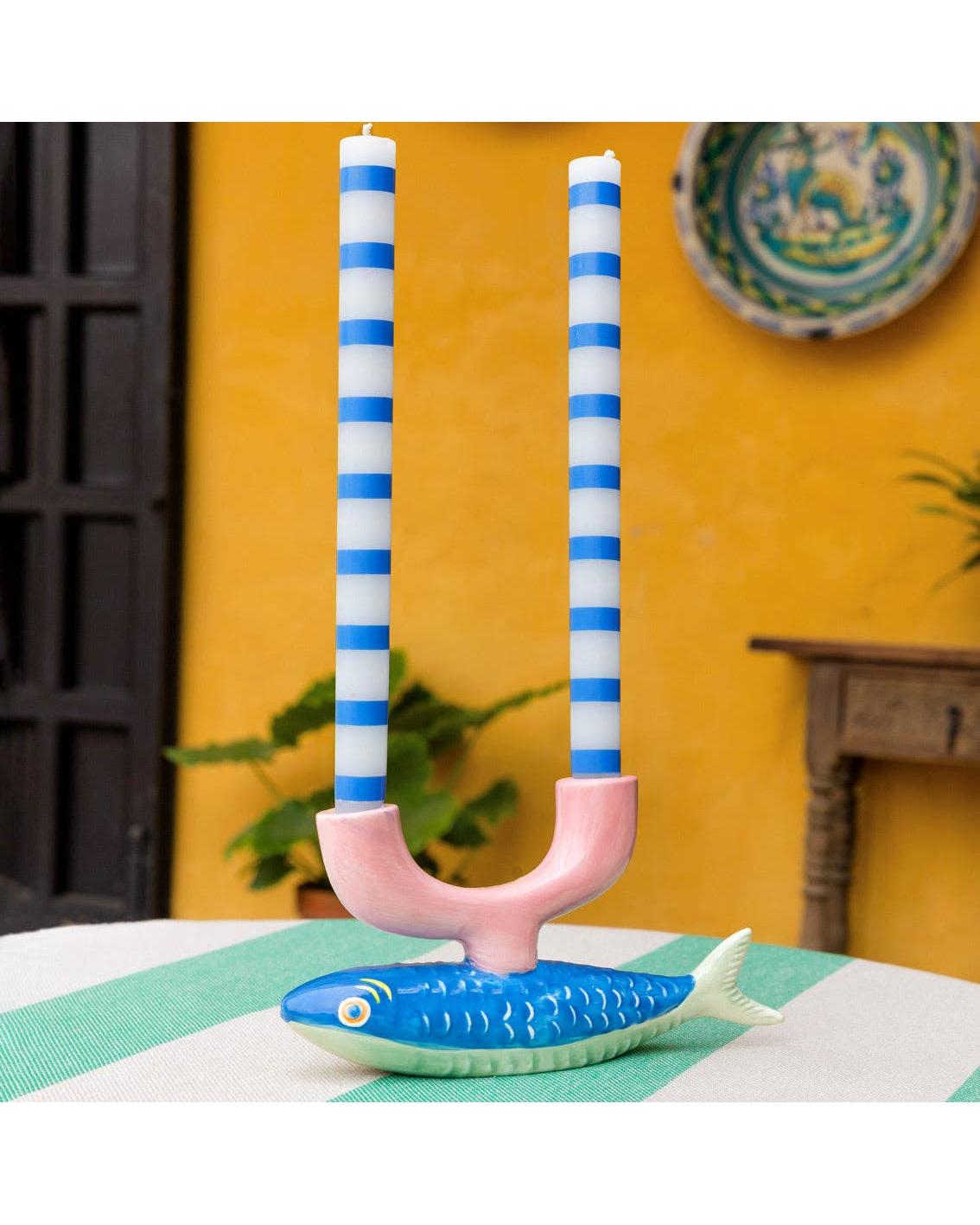 - Blue & White Stripe Dinner Candles