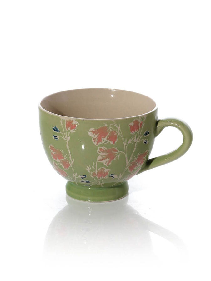 Here we have the Moments That Matter Green Cup from Langs. Made entirely from stoneware, this vase features a beautifully unglazed floral pattern. It is sure to become your new go to for hot drinks.