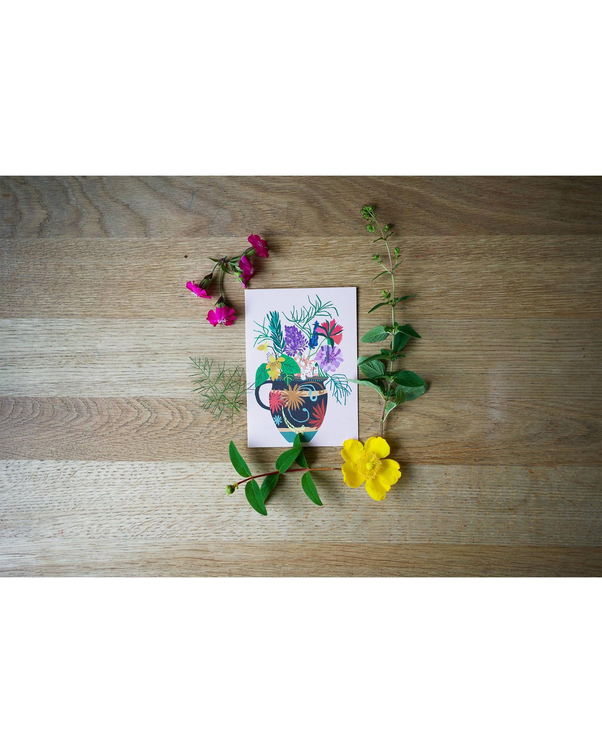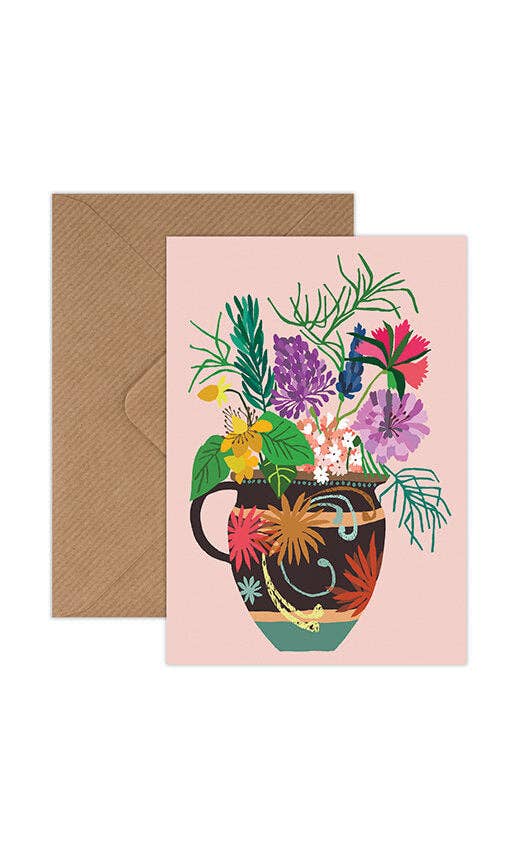 A6 Greetings card with Garden Vase illustration, blank inside.