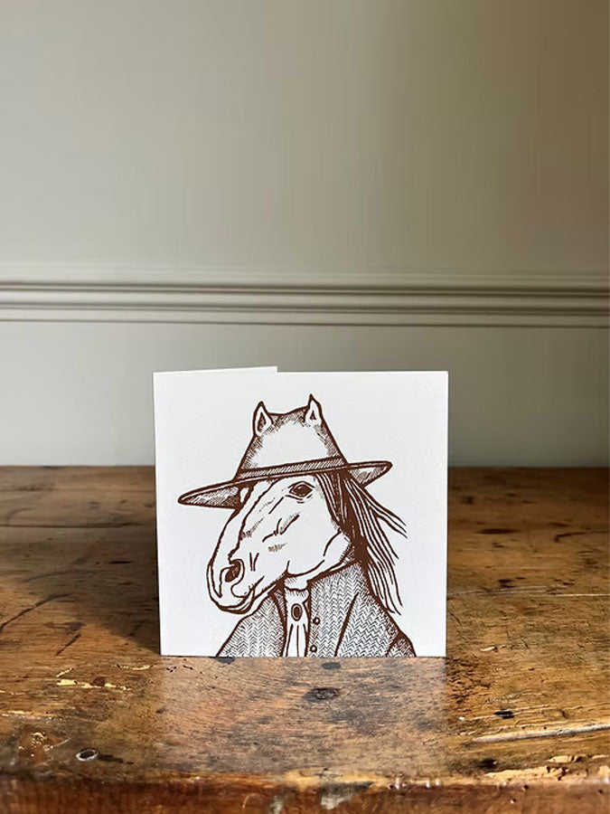 Here we have the Pip Horse Card from Jan Jay Designs. A lovely card perfect for any occasion. Printed onto lightly textured cardstock and complete with a kraft paper envelope, this card is also blank inside for your own personalised message.