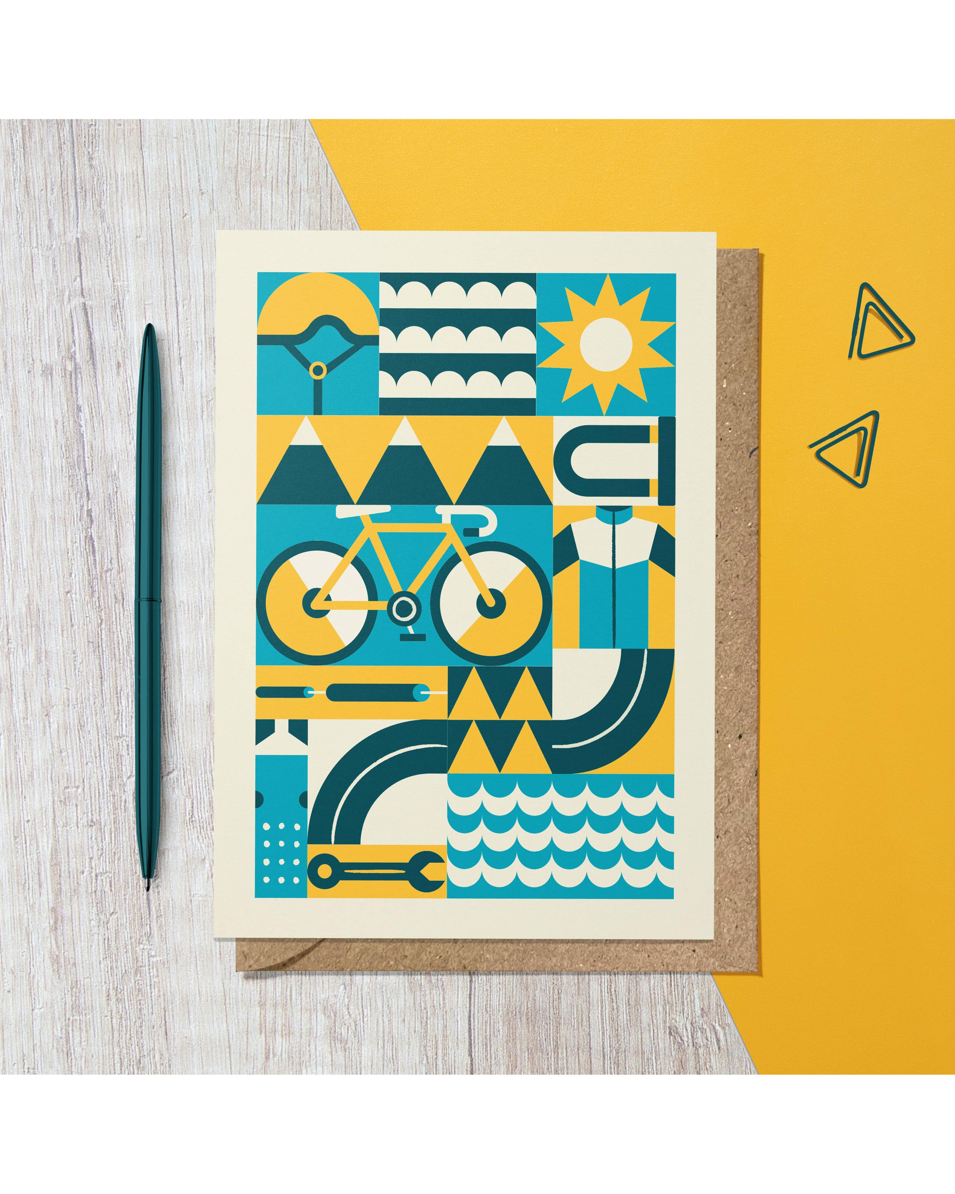- Cycling Sport | Retro Geometric Reusable Greeting Card