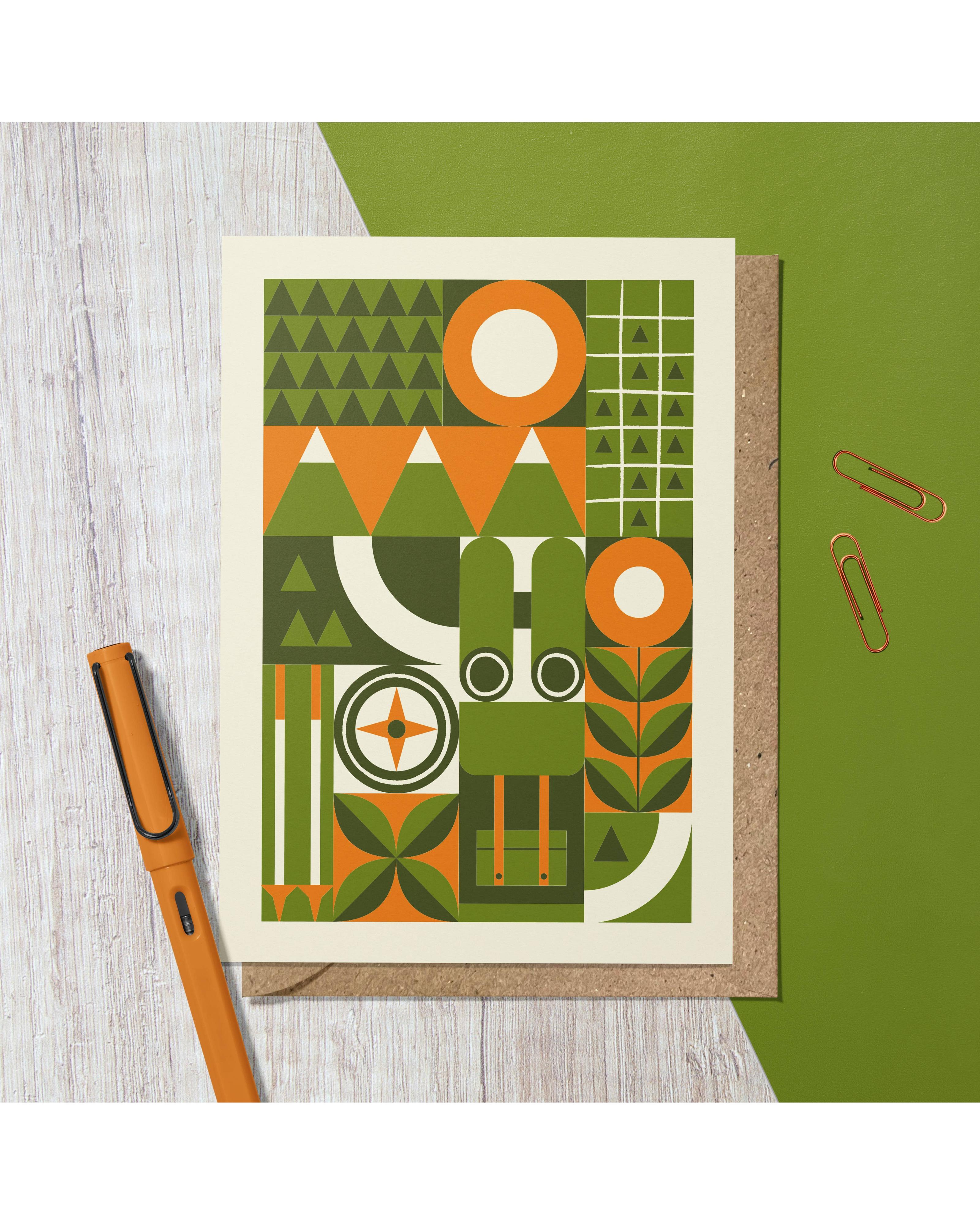 - Hiking Adventure | Retro Geometric Reusable Greeting Card