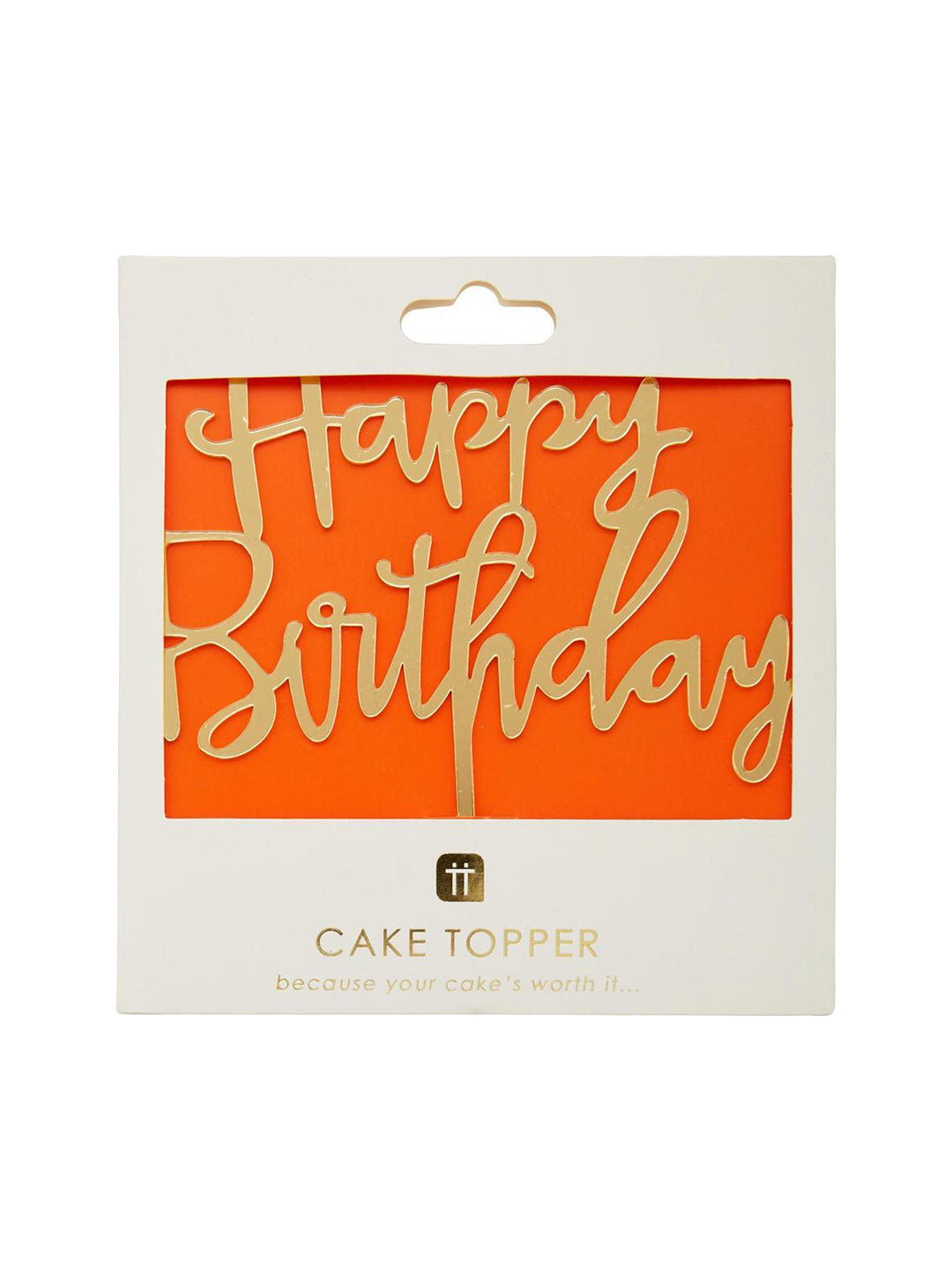 Here is the Gold Happy Birthday Cake Topper by Talking Tables. Add the finishing touches to any birthday cake with this cake decoration, suitable for kids and adults of all ages! This cake topper is reusable, simply wipe clean with a damp cloth to use again.
