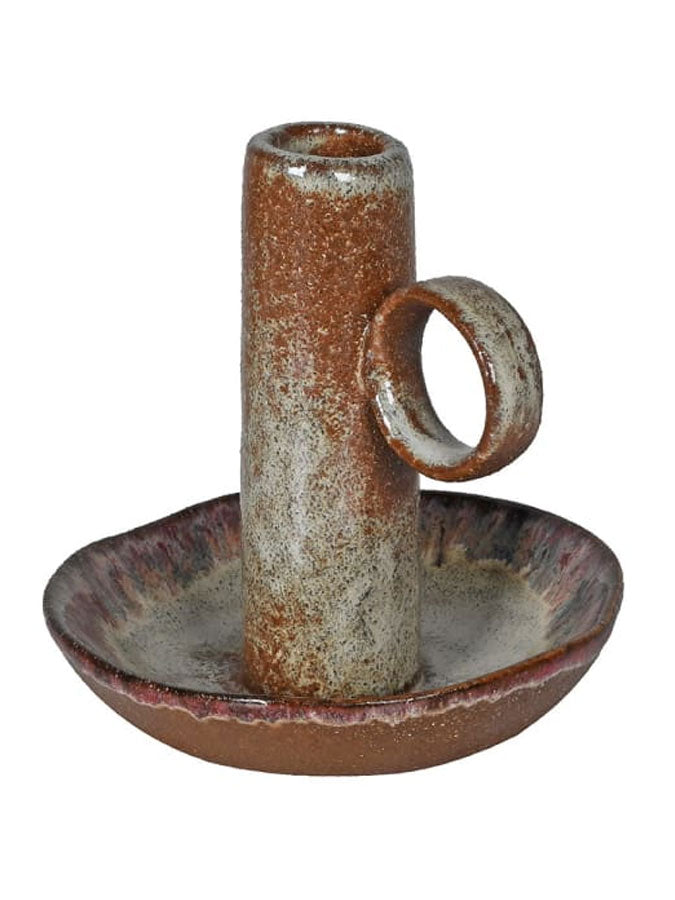 The Brown Ombre Candle holder from Coach House showcases a stunning reactive glaze finish. Crafted entirely from stoneware, this handmade piece is designed to hold a standard tapered candle. It adds charm both when lit and as a decorative accent in your space.