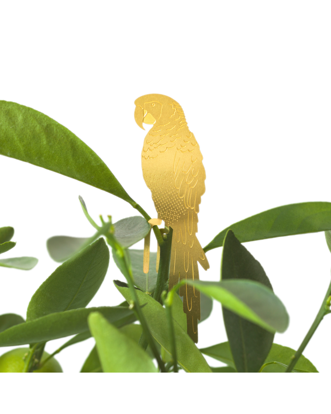 Introducing the Parrot Plant Animal from Another studio. Crafted from corrosion resistant brass, this is the perfect addition to any household plant. The Plant Animal Parrot is beautifully etched in brass with feathered details. He perches perfectly on top of your most tropical houseplant, by simply straddling his legs over the stems of your plant. The intricate design and realistic details make it a fun choice for any plant or flower arrangement.