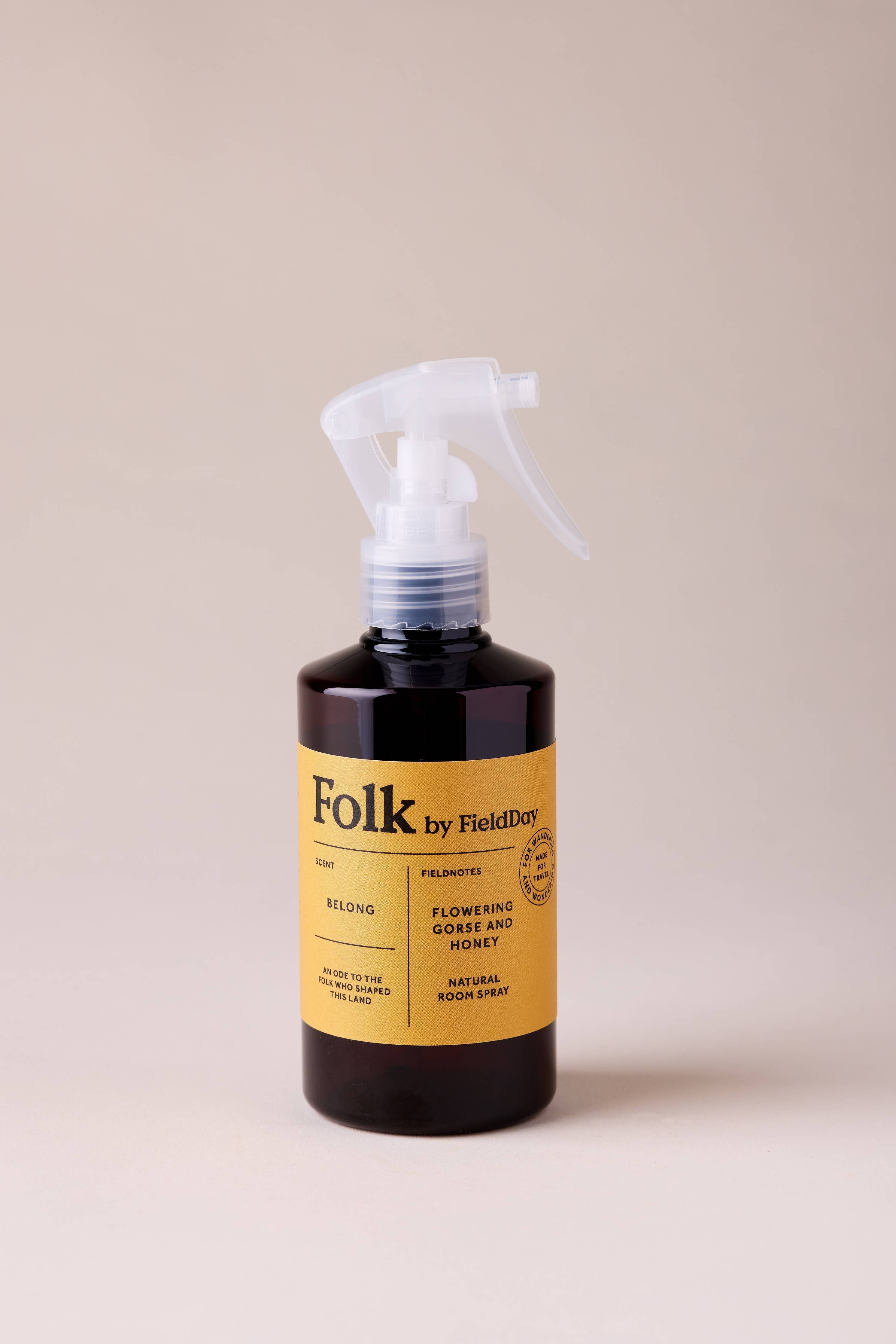 Flowering Gorse and Honey Room Spray in amber bottle.
