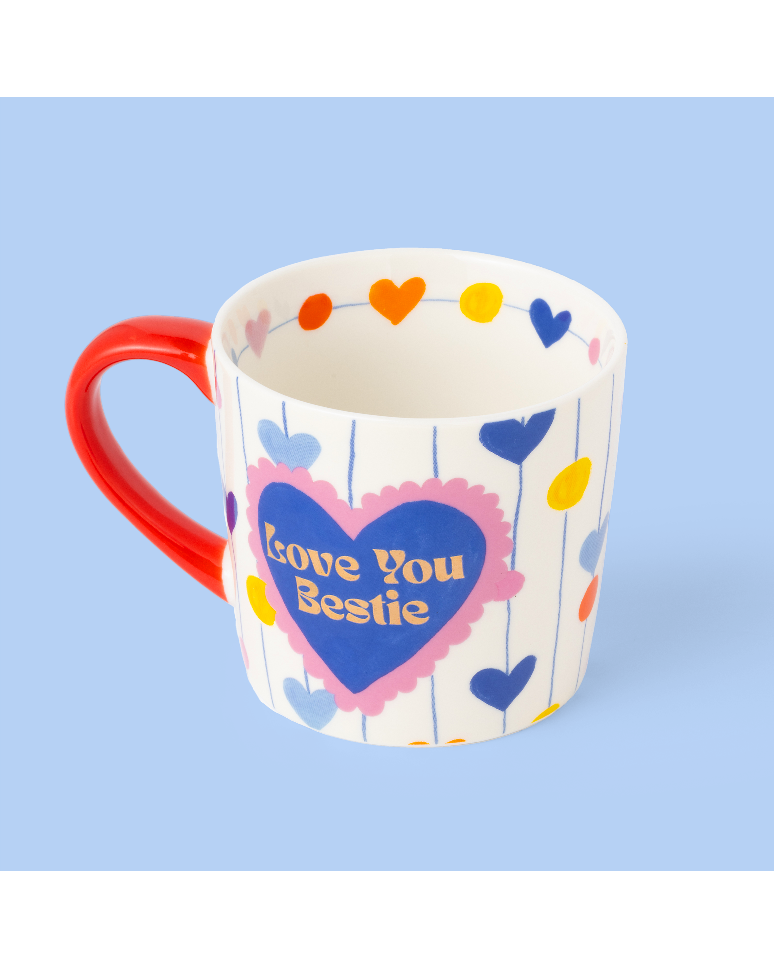 Celebrate the friendships that light up your life with the Heart Strings Love You Bestie Mug. Featuring soft pastel hearts dancing across the design and the sweet message “love you bestie”, this mug turns every sip into a little moment of joy. Perfect for Galentine’s, cosy catch-ups or just because, it’s the kind of gift that makes hearts flutter, laughs linger and friendship feel extra magical.