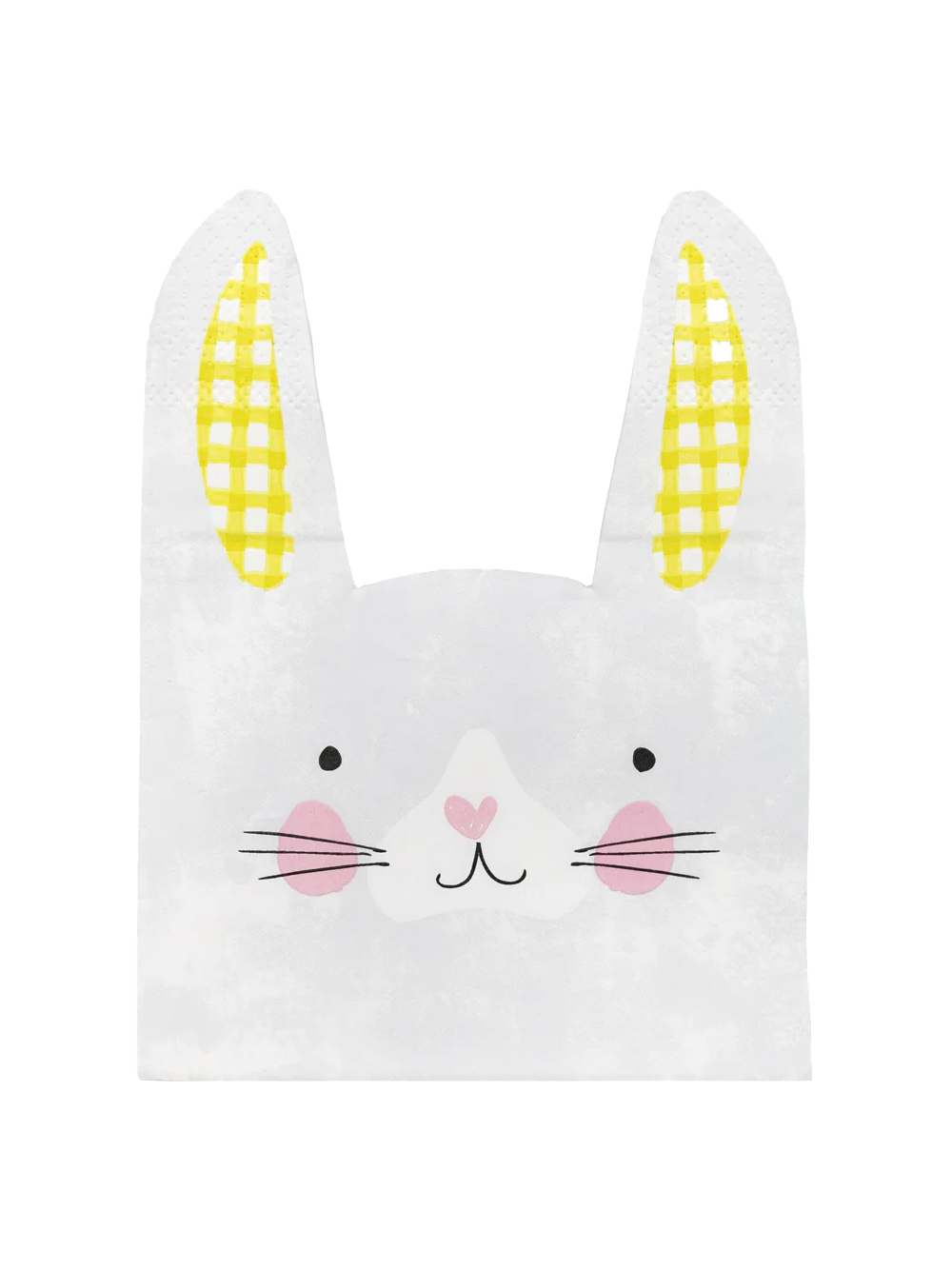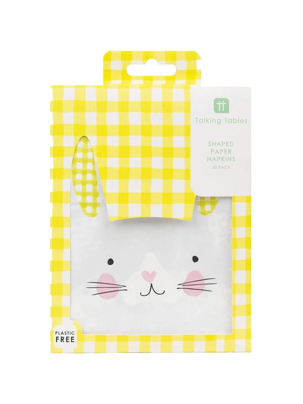 Add a hop of fun to your parties with these Bunny Shaped Napkins from talking tables! This pack of 20 napkins features cute bunny faces, perfect for Easter and spring gatherings. Packaged in 100% recyclable material with a sunny gingham design, these napkins will surely brighten up any celebration. Bonus: napkins are packaged in card with a cut out window, each pack comes with an extra napkin for extra protection!