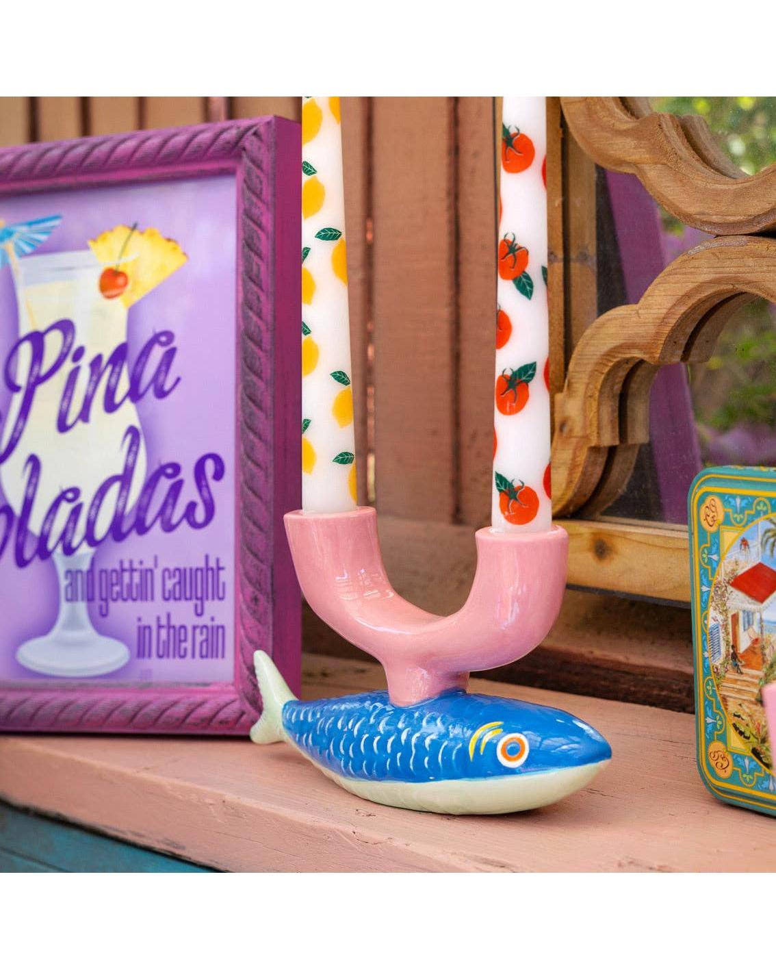 Introducing the Hand-Painted Fish Ceramic Candle Holder from Talking Tables. Beautifully crafted and individually hand-painted, this charming ceramic piece holds two standard tapered candles. With its coastal-inspired design, it’s the perfect way to bring a touch of seaside character to any room.