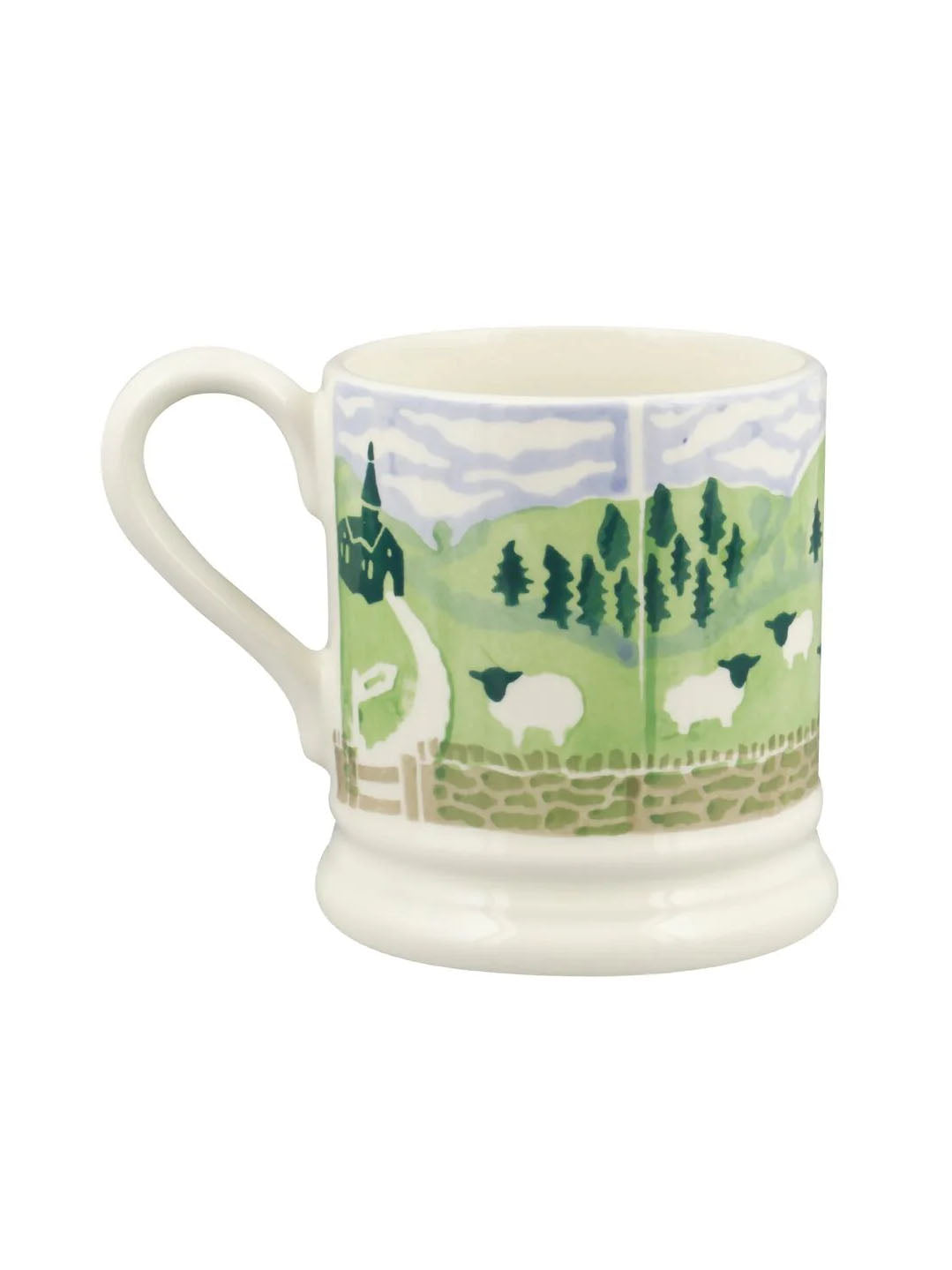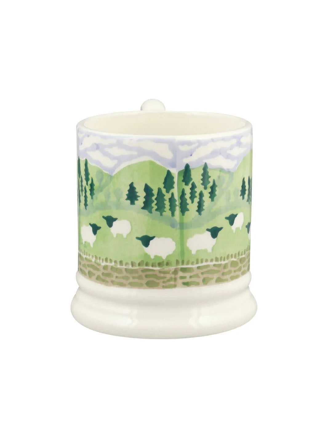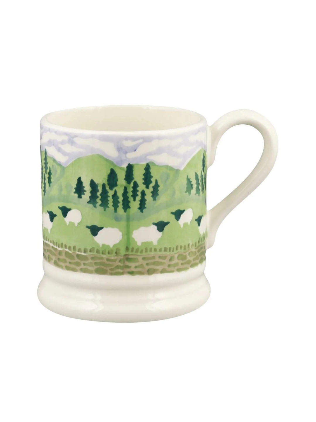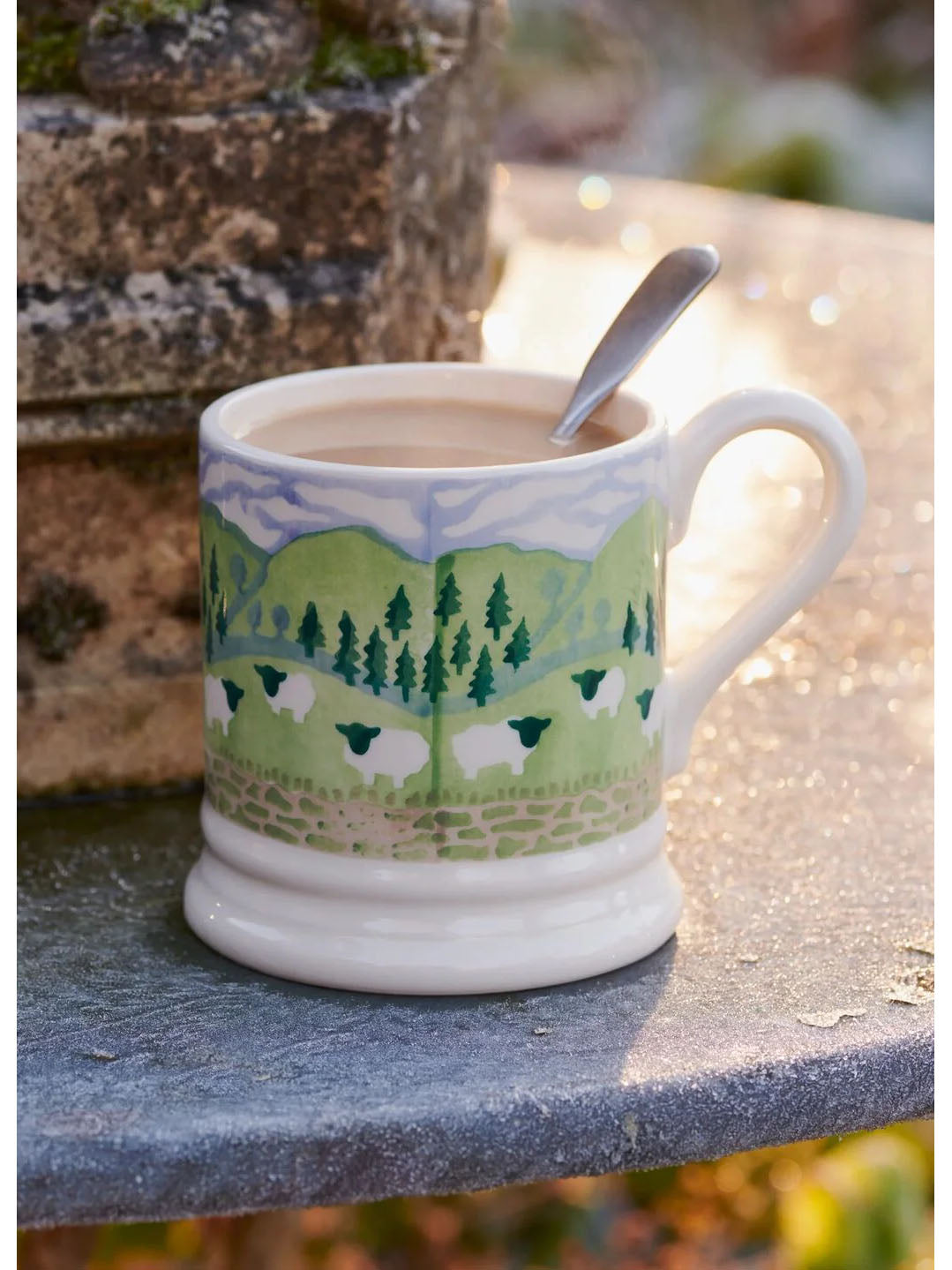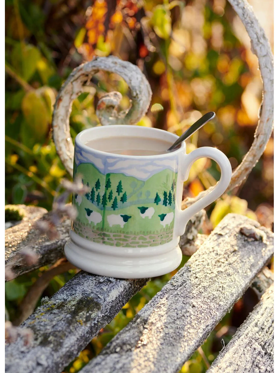 Sheep, from a distance, seem like content little clouds dotted on the landscape. As you get closer, you can see how they look so completely peaceful just doing their own thing; grazing in loose clusters and milling around in no particular hurry. It’s a soothing sight on a walk – and on our Mountain Sheep 1/2 Pint Mug. The first sip of tea from your mug back home continues that feeling, like a warm, woolly sort of happiness that happens to come in a handmade mug.