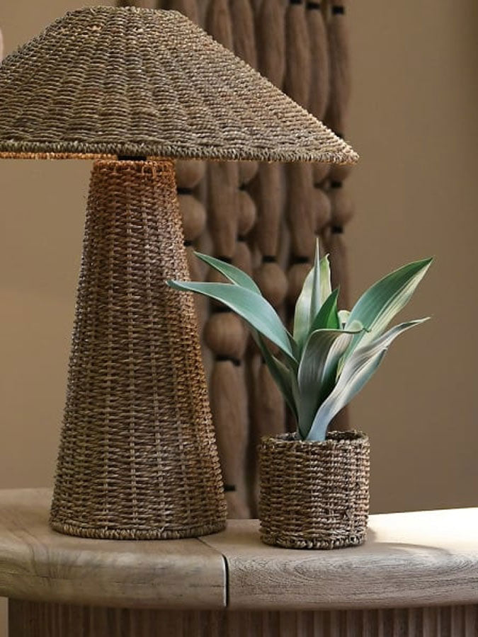 This Agave Plant in Rattan Pot from Coach House offers a lifelike faux agave housed in a woven rattan planter. It’s an easy way to bring a refreshing green element to your decor without the need for upkeep, ideal for brightening any room effortlessly.