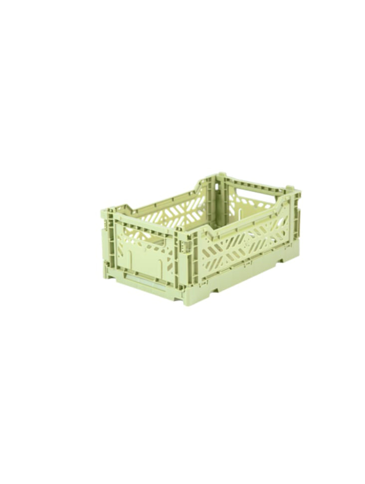 This is our Storage Crate Small in Melon Green. We love these beautiful crates, they're extremely versatile and come in a range of lovely pastel colours and 3 different sizes. They're super sturdy, durable, foldable and stackable. The small crate is perfect for storing magazines, small children’s toys or bathroom hand towels - just a few ideas for you. This one here comes in a sweet melon green.