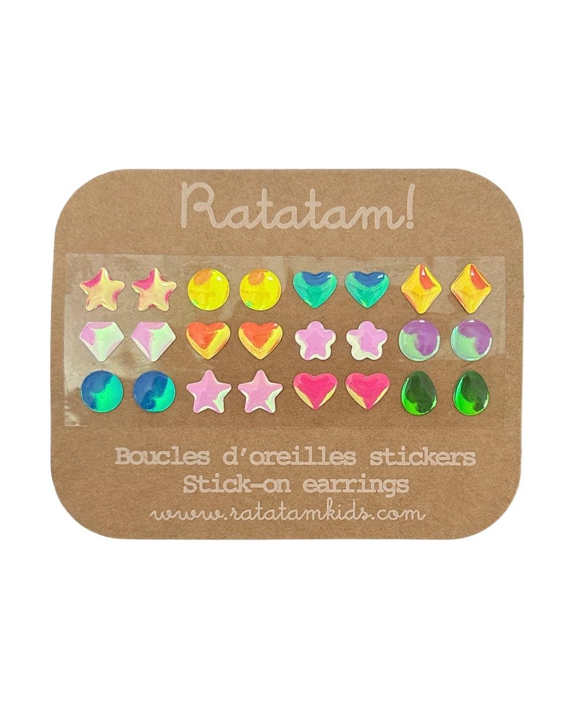 Discover the magic of colors with our Set of 12 Ratatam Kids Self-Adhesive Earrings! These self-adhesive earrings are perfect for adding fun and fantasy to every day, recalling the wonderful memories of childhood treasures.