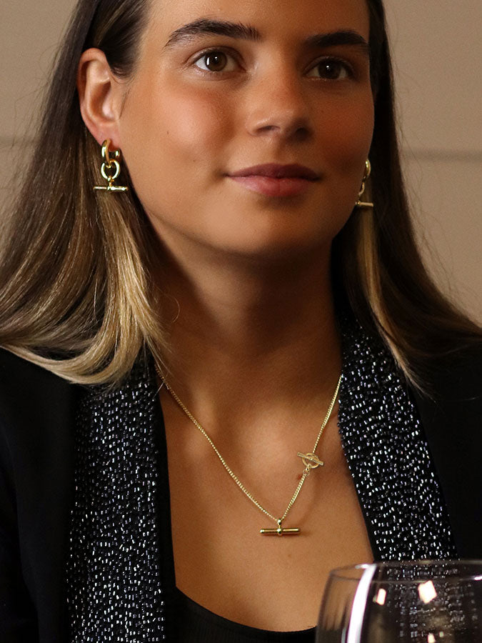 • Faux Gold T Bar Pendant on Chain with T Bar Closure