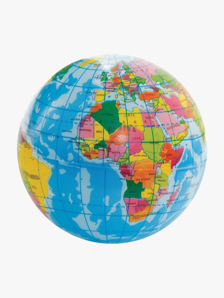 This is the Squishy Globe from House of Marbles. The whole world in your grasp! This palm sized globe made of squeezable foam makes a great bouncy ball and stress reliever. It comes with a colourful world map printed on it making it very educational too!