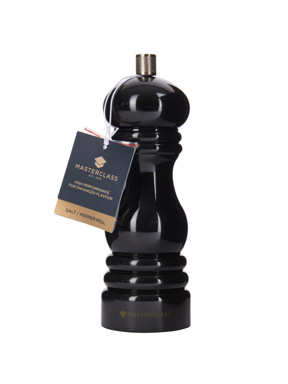 Introducing the Black 17cm Salt/Pepper Mill from Kitchen Craft! Its striking black appearance and iconic capstan design take a timeless concept and elevate it to a whole new level. Standing at a height of 17 cm (6½ inches), this medium-sized MasterClass mill is the perfect addition to any dining table or kitchen counter, and its compact size makes for easy storage. And thanks to its durable ceramic grinding mechanism, it not only looks fantastic but is also built to last - backed by a five-year guarantee.