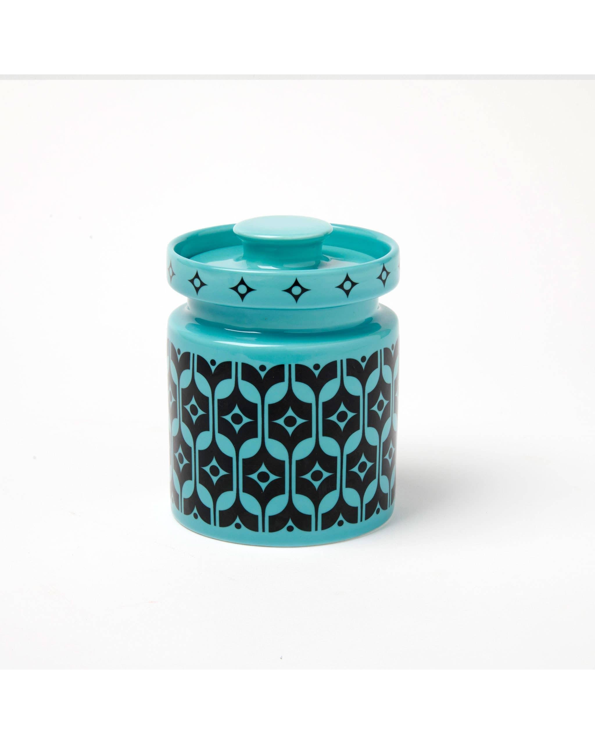 Hornsea Lidded mini Jar. Gift Boxed in matching design box. Use for sugar, coffee, cotton balls, candy etc... Our ongoing collaboration with vintage pottery brand – Hornsea. They are a great British design story involving some of the giants of British pattern and ceramic design. Product specs HAND-GLAZED STONEWARE GIFT-BOXED DIMENSIONS: 17CM HIGH; 14CM DIAMETER WEIGHT: 1370 GRAMS DISHWASHER & MICROWAVE SAFE More about Magpie x Hornsea Hornsea Potteries was founded in 1949 by brothers Colin and Desmond Rawson. Driven by a wide array of design influences, the pottery quickly grew from being a purveyor of seaside tourist trinkets to the largest studio pottery in the world, employing over 700 people. Hornsea’s rapid growth was generated by widespread popularity and inspirational design. Hornsea developed unique and ground-breaking techniques and designs. Trading for 50 years before closing in 2000, Magpie has started re-manufacturing some of their greatest designs.